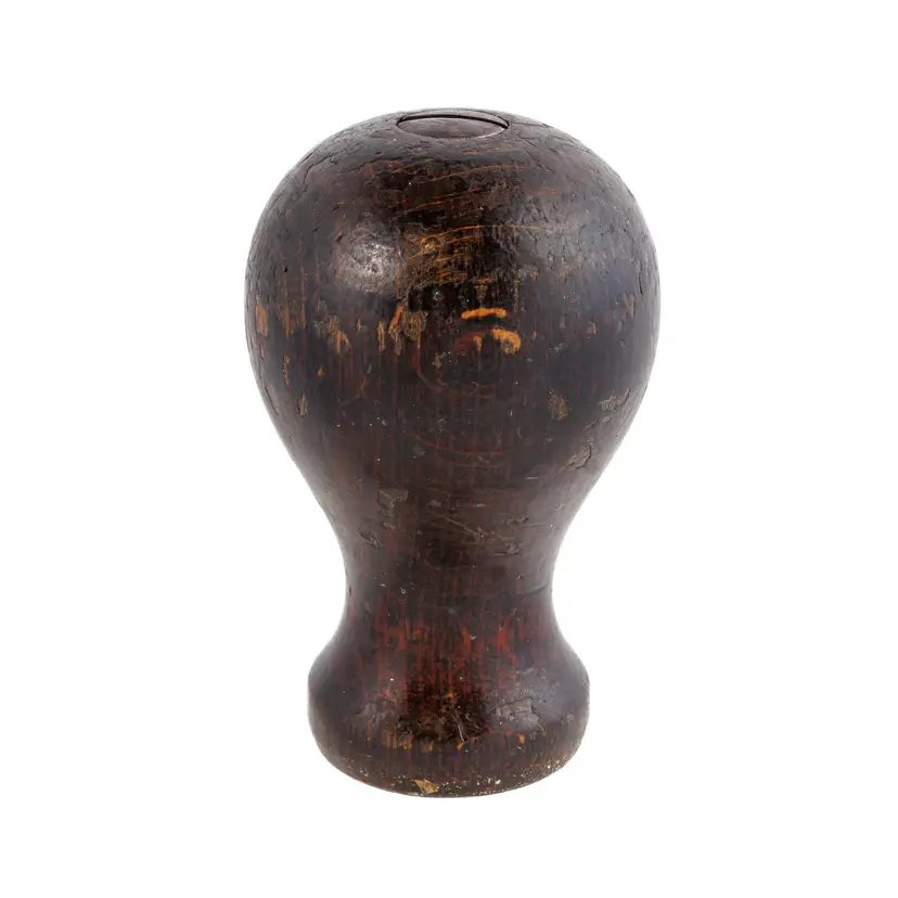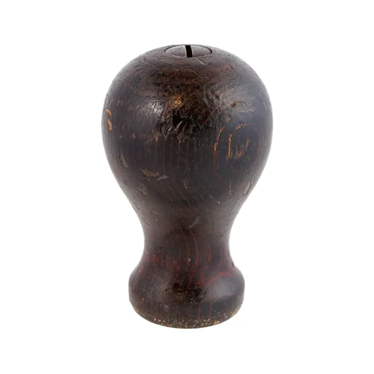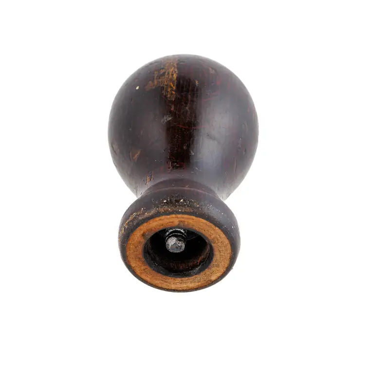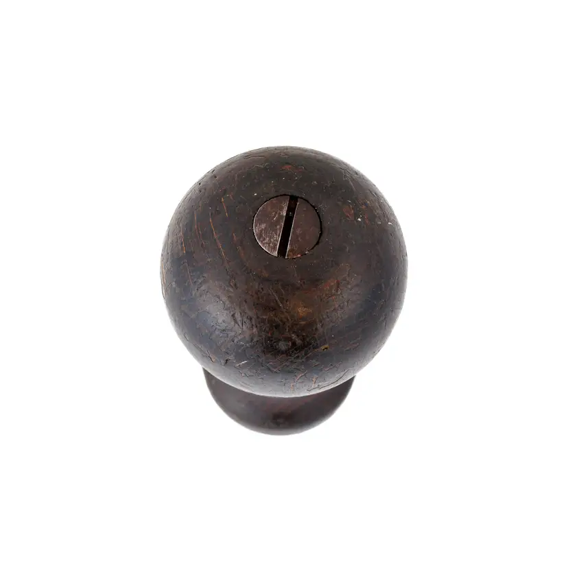 A Good Plus original vintage hardwood knob for a Stanley No. 3, 4, & 5-1/4 smoothing plane. It was salvaged from a type 17 plane, and is not rosewood. It has the tapered base that fits into the knob receiver/ring. There is some wear in the finish, but no damage or repairs. 2.65" tall