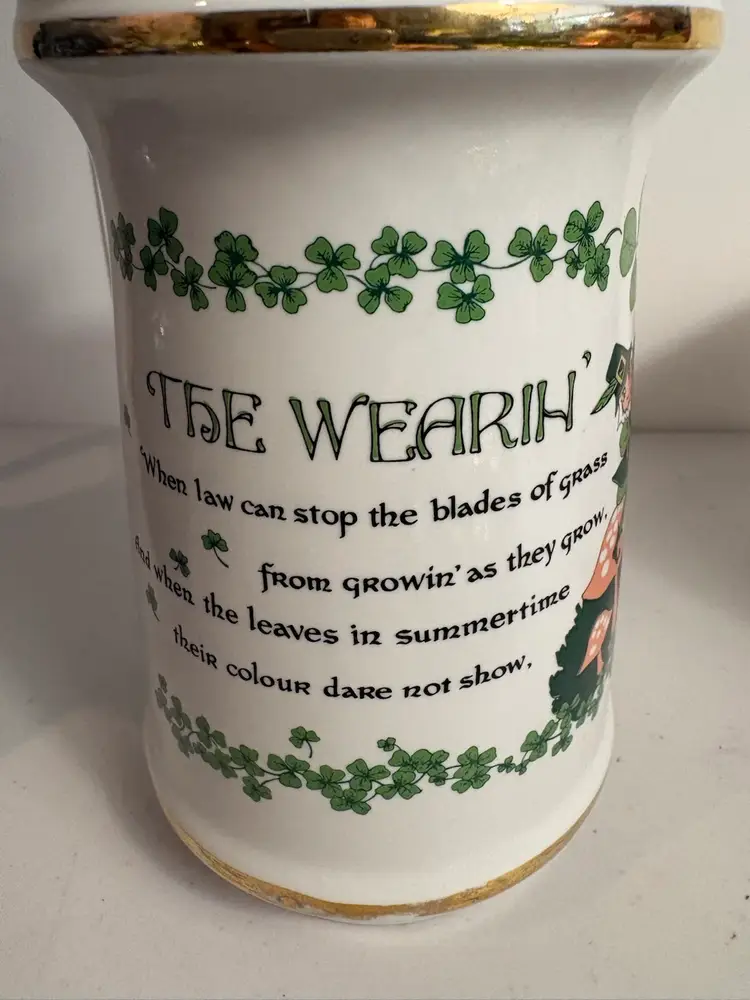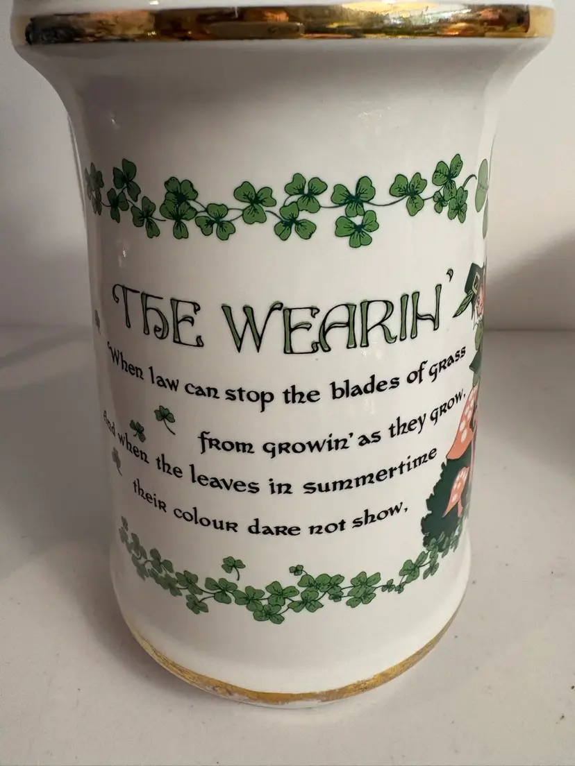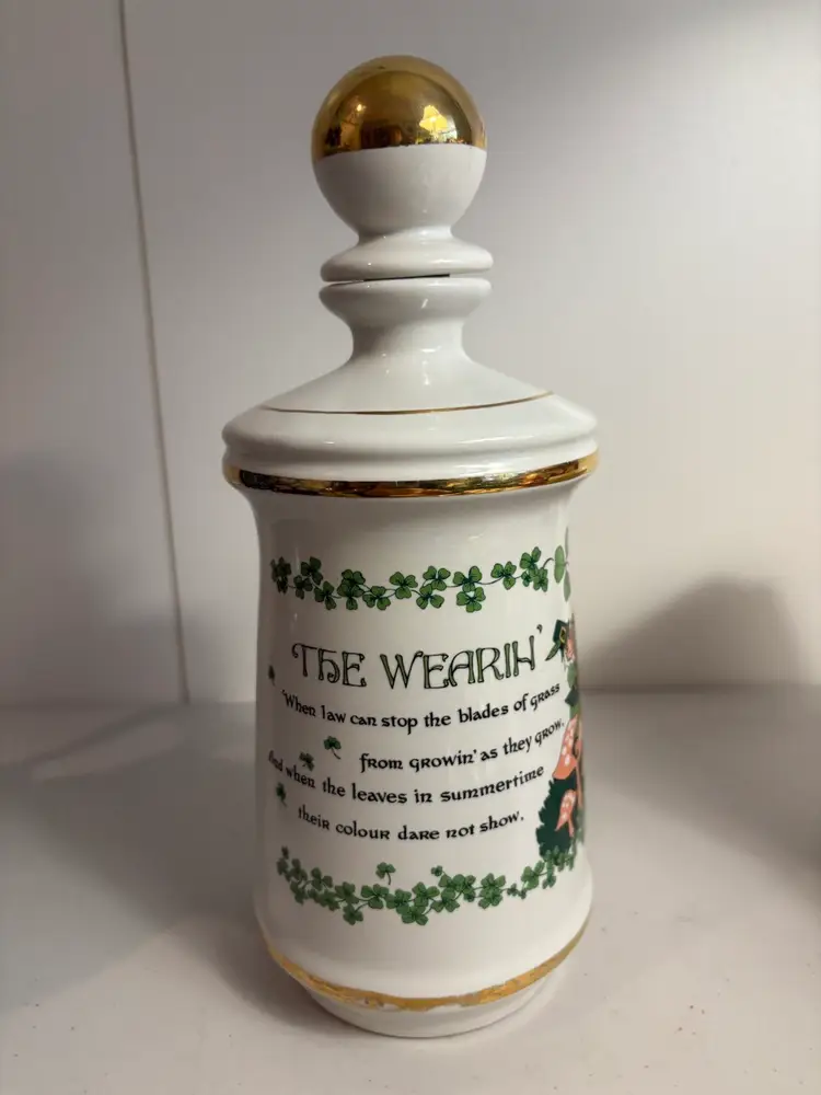 The Stitzel Weller Old Fitzgerald Blarney Bottle Irish Ballad Porcelain Decanter from the mid-century modern era is a collectible advertising piece featuring a white color scheme and a distillery theme. Created in 1968 in the United States, this original decanter represents the brand Old Fitzgerald and is a unique addition to any collection of vintage distillery memorabilia. Its distinctive design and historical significance make it a sought-after item for collectors interested in the history of American distilling and advertising.