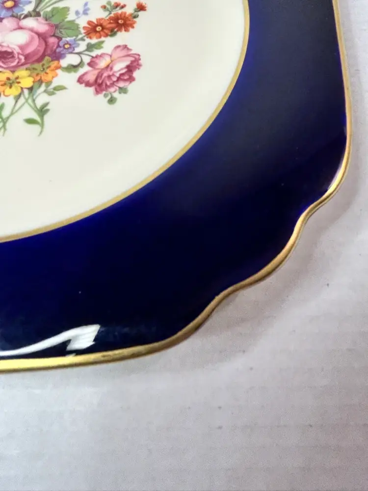 Beautiful Cobalt Blue and Floral design with gold trim. No chips or cracks. Makes a wonderful display piece