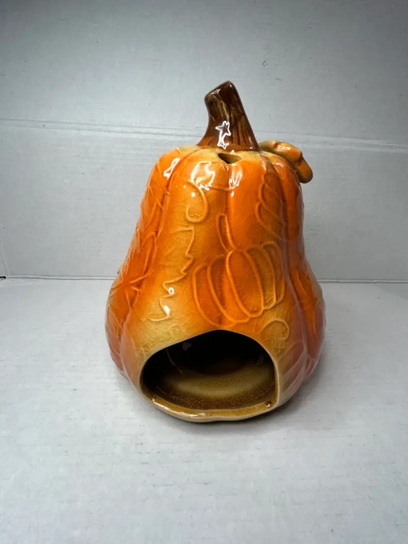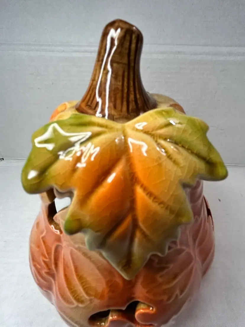 The Thanksgiving Fall Pumpkin Tea Light Candle Holder in orange is a contemporary-style ceramic decorative collectible perfect for Halloween and Thanksgiving occasions. This glossy-finished candle holder features a pumpkin pattern, adding a festive touch to your home decor. This candle holder is a great addition to your fall decorations, bringing a warm and cozy ambiance to your space.