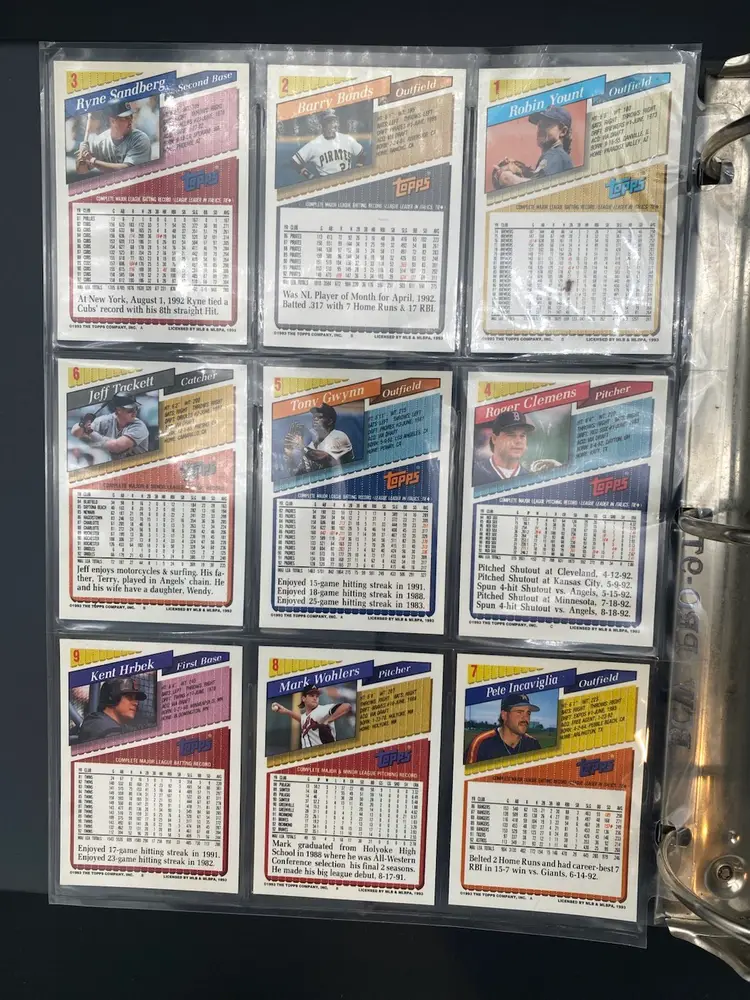Topps 1993 MLB Complete 825 Trading Card Set Binder