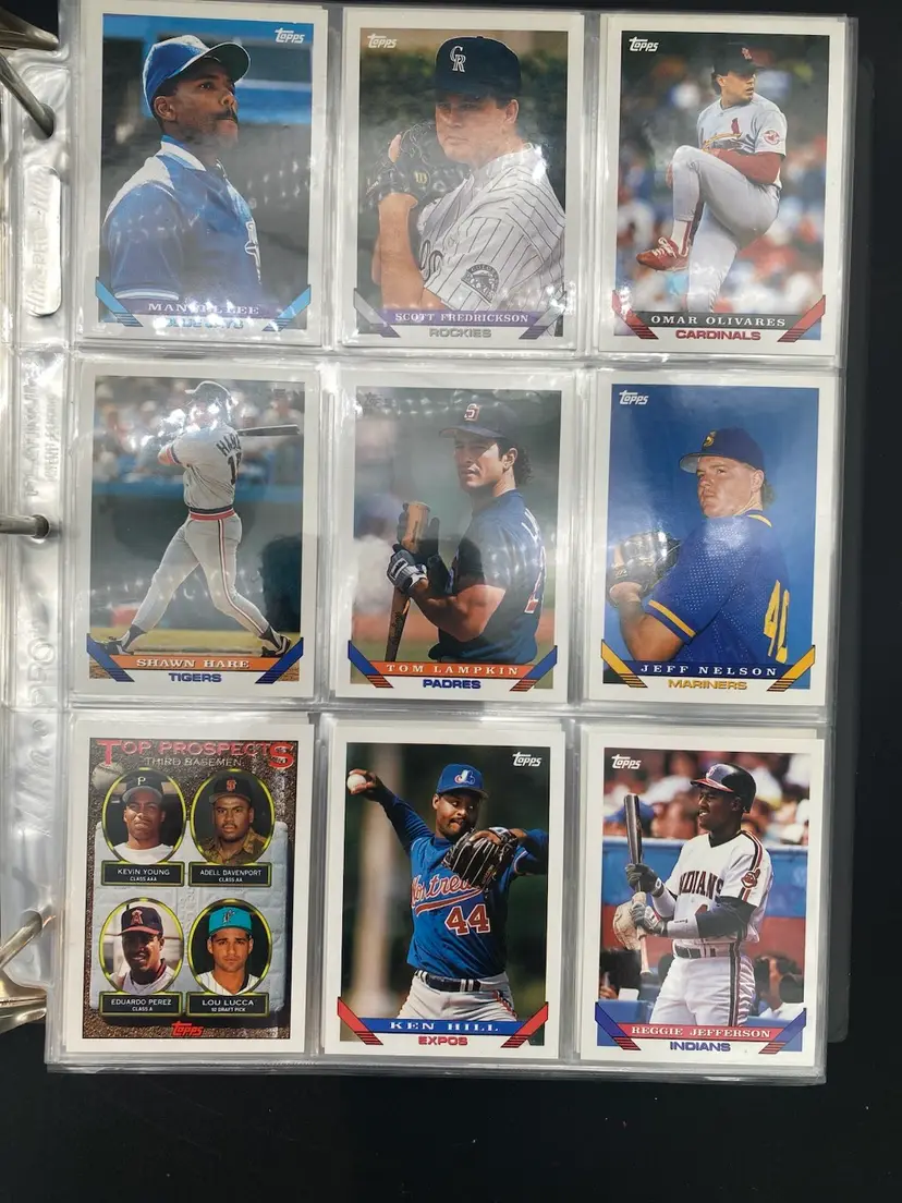 You are purchasing one Complete MLB 825 Trading Card Set of Topps 1993. This Set is organized in a Baseball Card Album Binder. These Cards are in overall great condition. Ranging from Excellent to Near Mint.