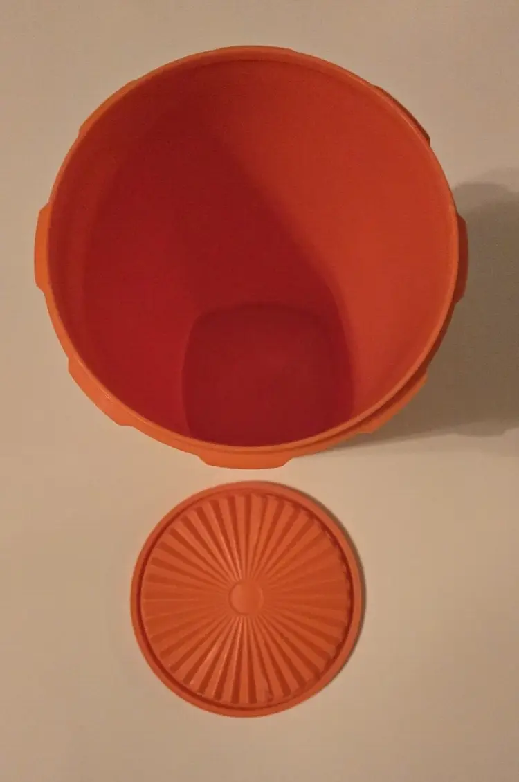 Tupperware Canister 10.5" Tall Servalier Orange w/ Lid Vintage #1222-3 (808-35 is the Lid model code)