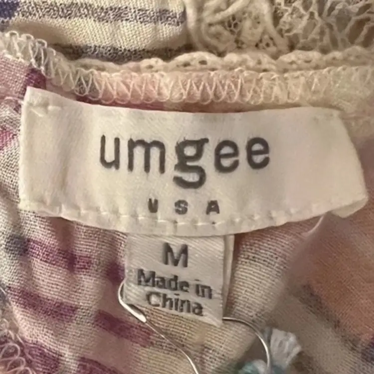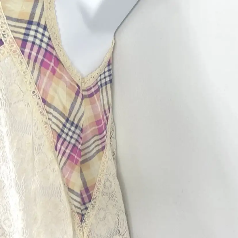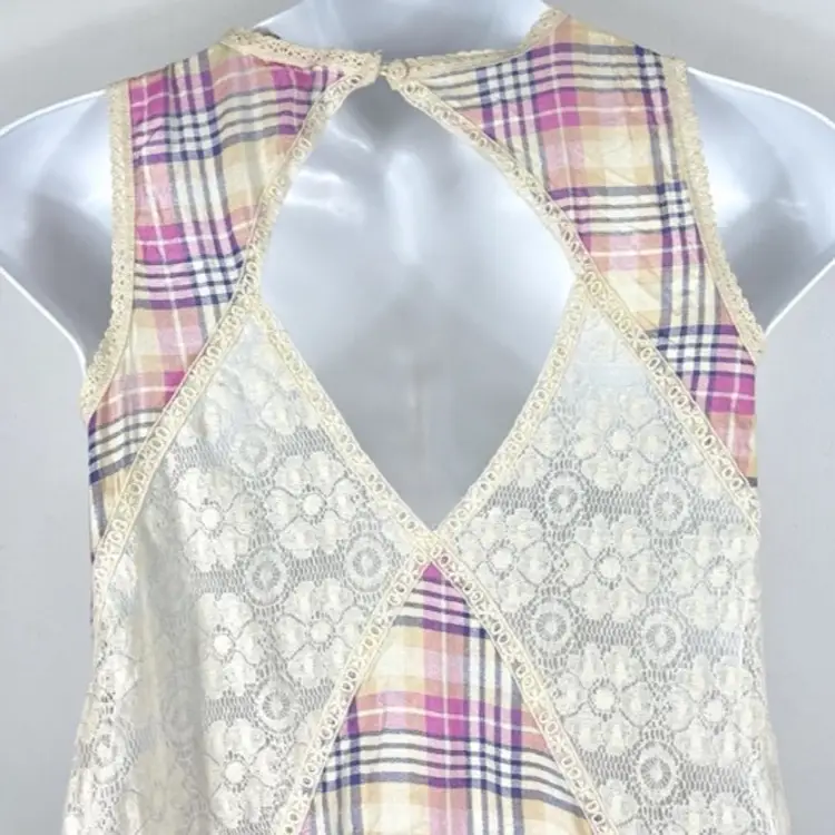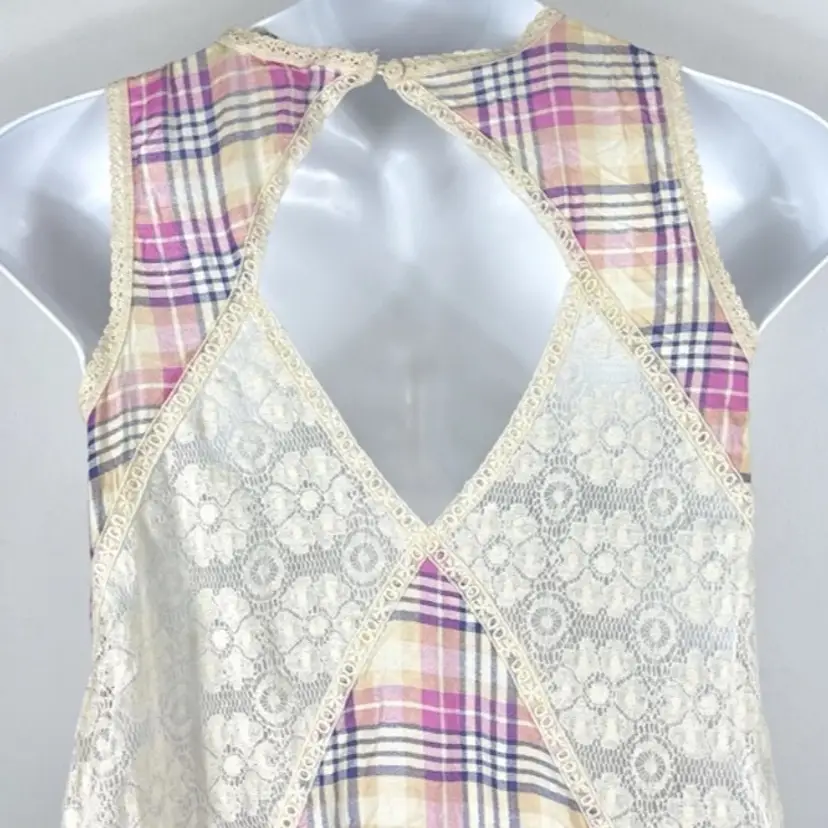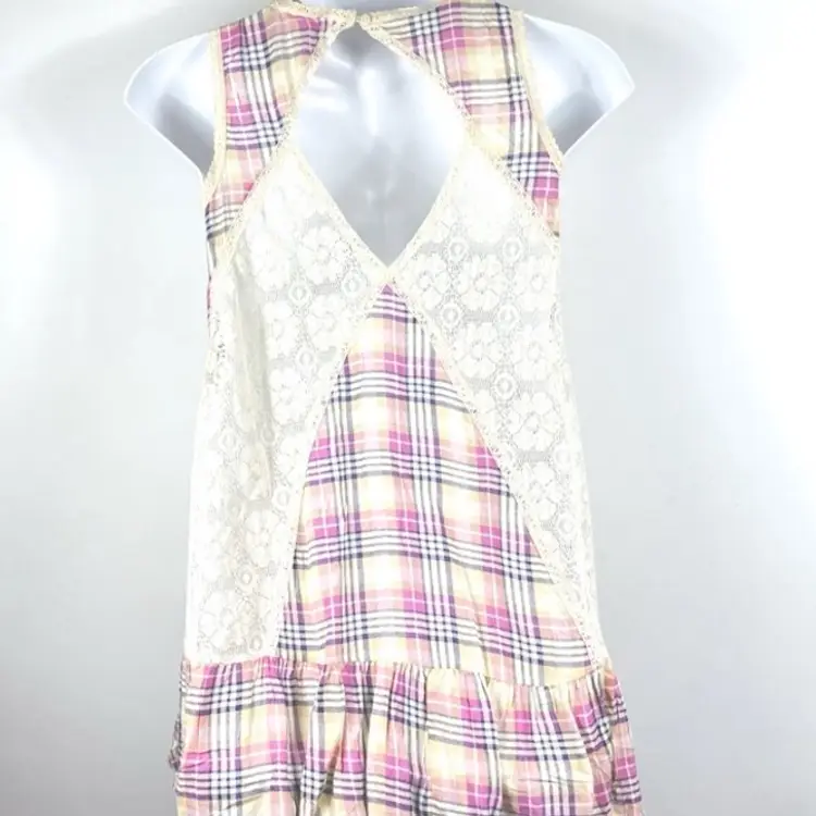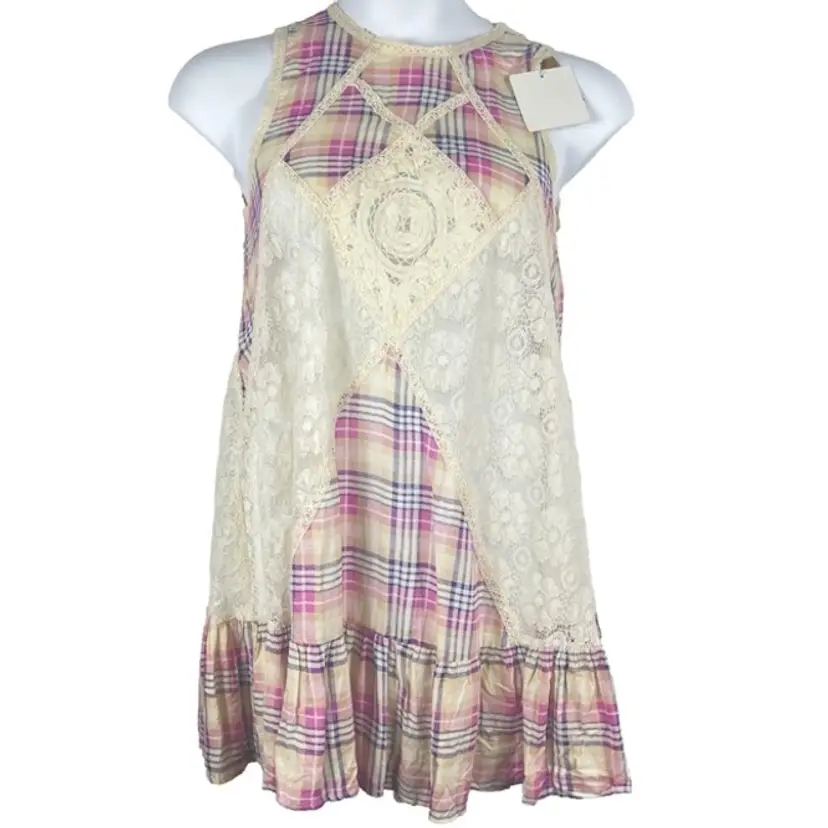 Umgee Lace Mini Dress Womens Size Medium Plaid Floral Swing Cottagecore Prairie