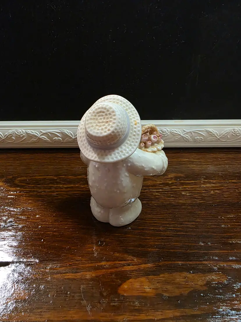 Vintage 2000 Lenox Snowman figurine. Piece is in Amazing condition with no chips or cracks. Piece is approximately 4 inches height and 2 inches length with a width of 1.5 inches. Very cute and collective piece of a white porcelain Snowman with gold highlighted buttons holding a basket of roses and shovel. Very nice looking piece of collective porcelain by the well-known Lenox franchise.