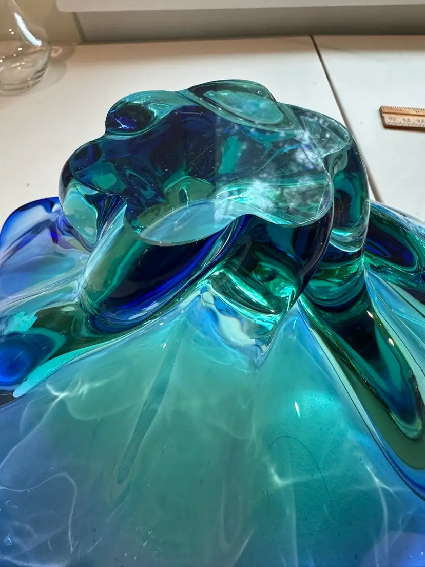 Vintage Art Glass Bowl Blue & Green