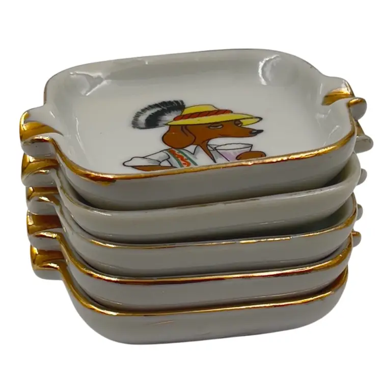 VINTAGE ASHTRAY SET Stacking Porcelain Gold Trim See Description 2.5x2.5”