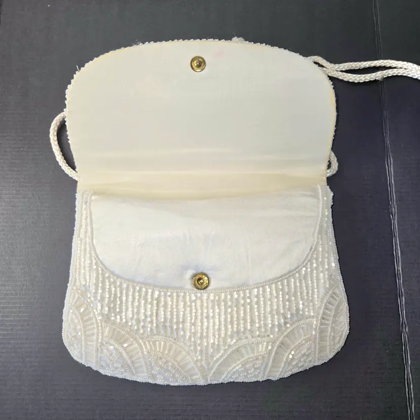 Vintage Beaded Shoulder Evening Bag Braided Strap Snap Closure