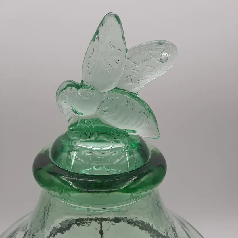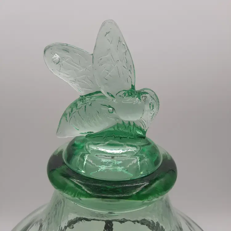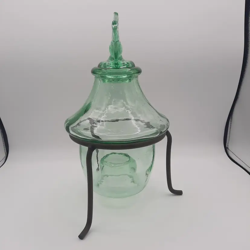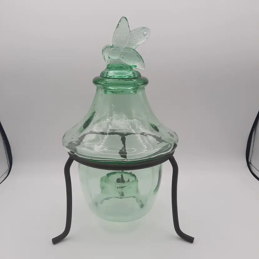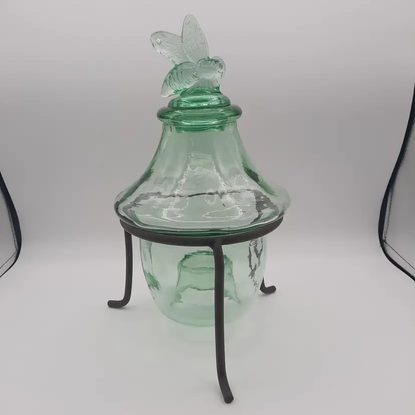 Vintage Bee Wasp Catcher Green Glass with Bee Stopper Iron Stand