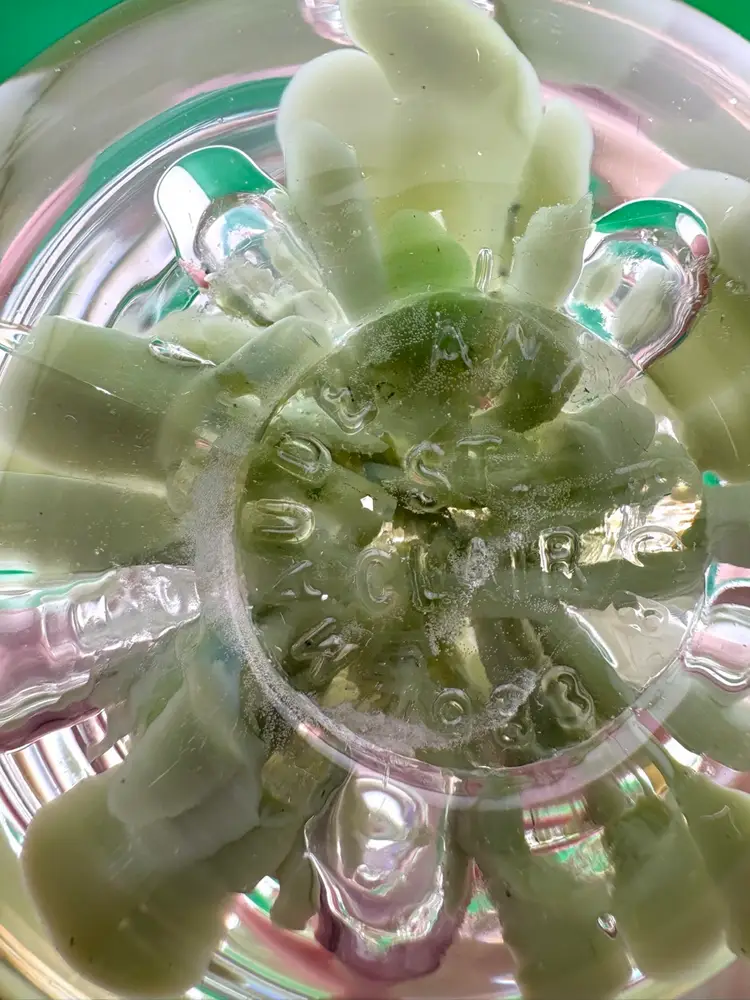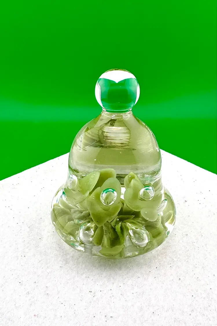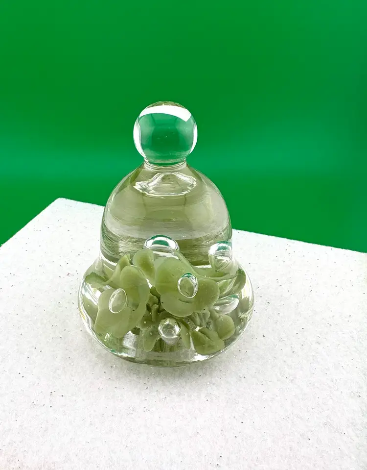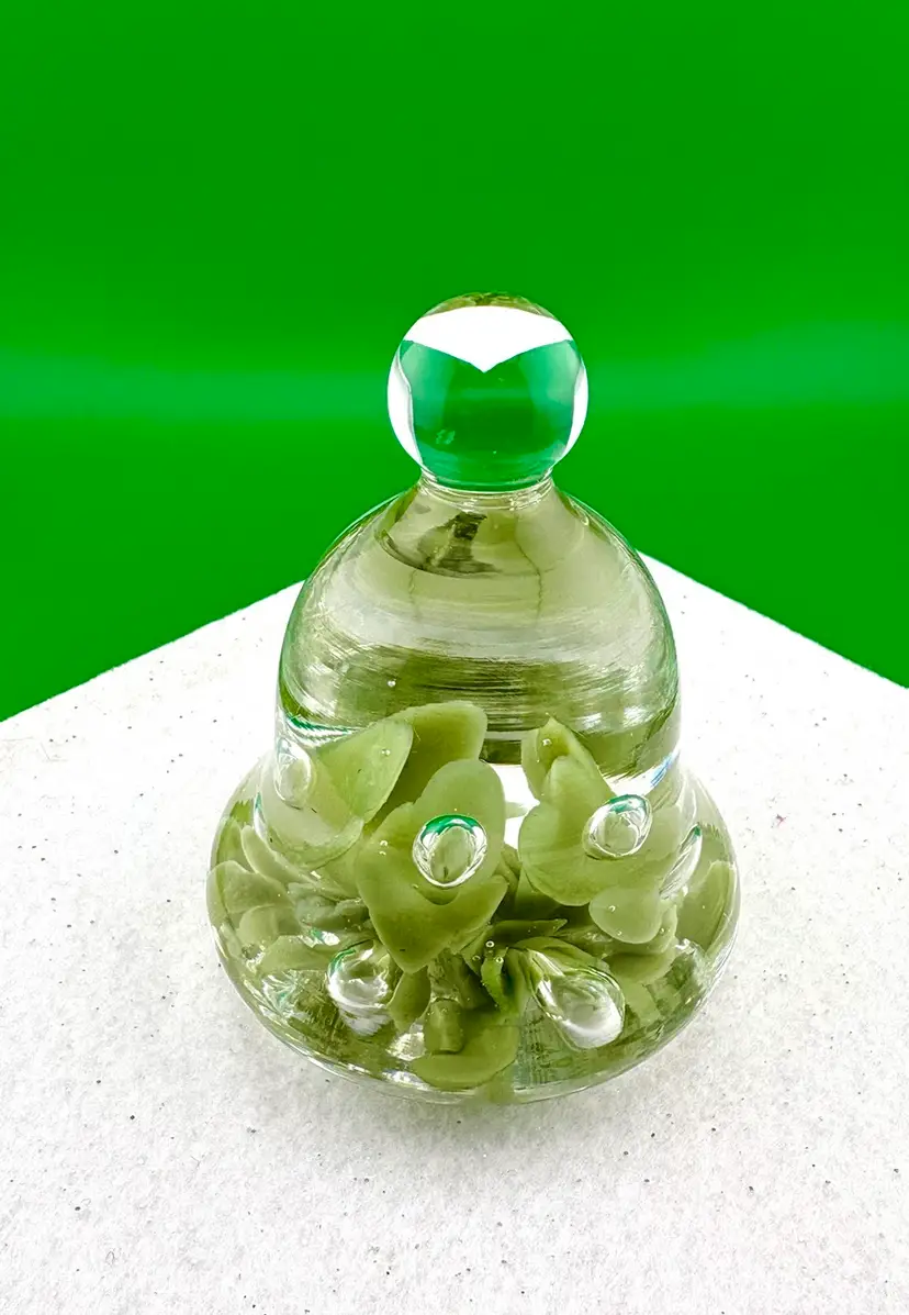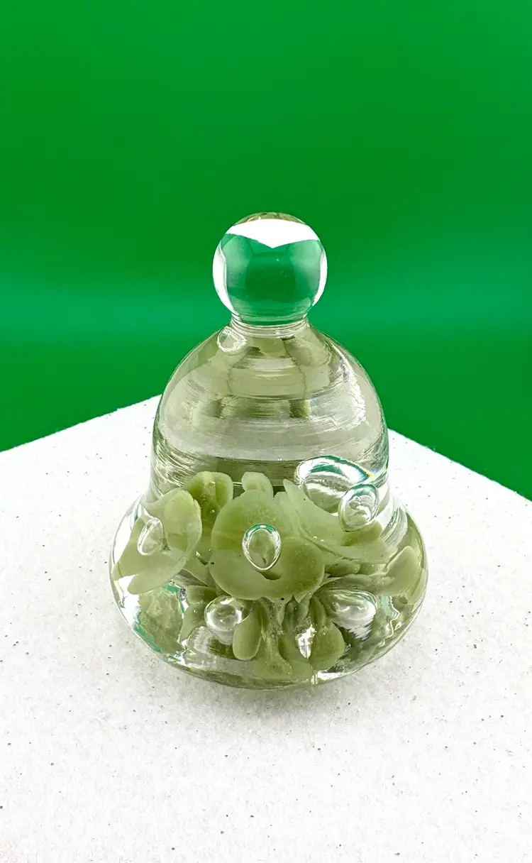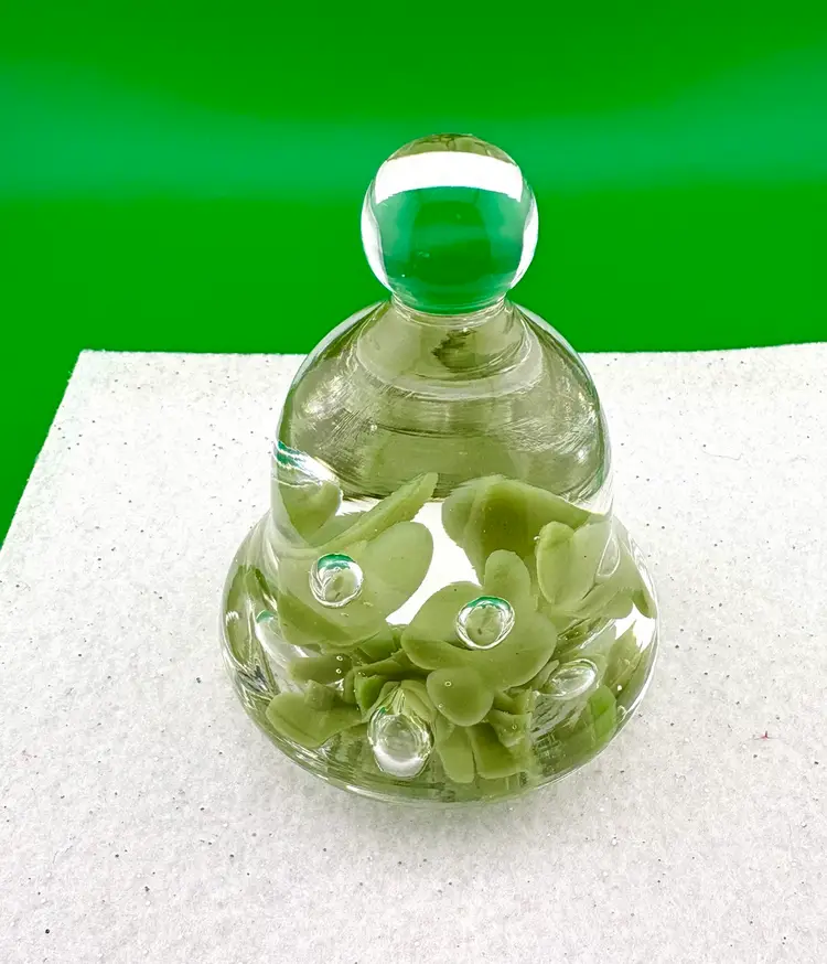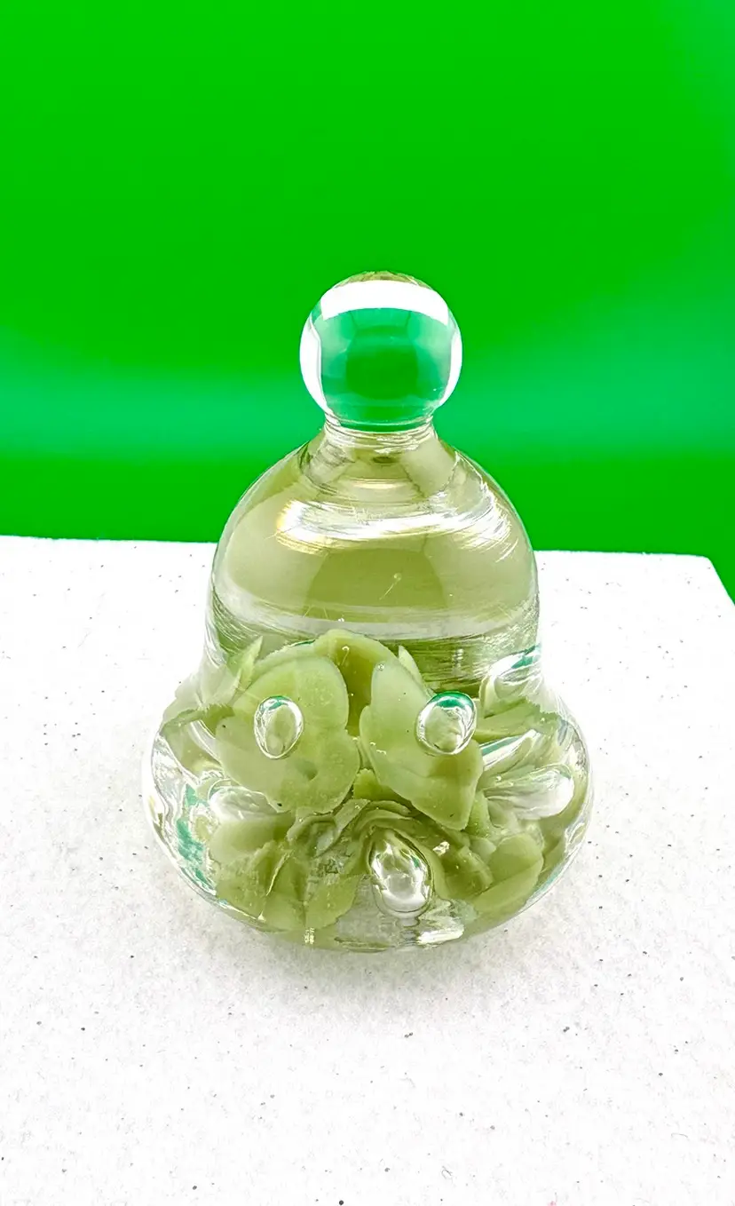 Vintage Bell Shaped Paperweight By Maude & Bob St Clair Light Green Flowers 3” x 2.5”