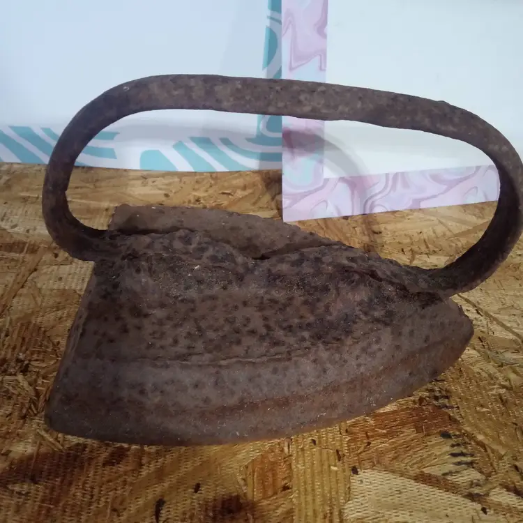 Authentic vintage cast iron sad iron with heavy rustic patina. Great for farmhouse décor, primitive displays, photo props, or collectors of antique household tools. Sold as-is with visible rust and wear consistent with age.