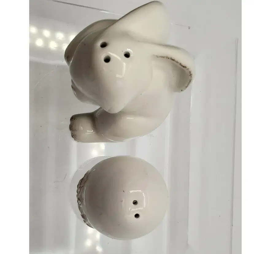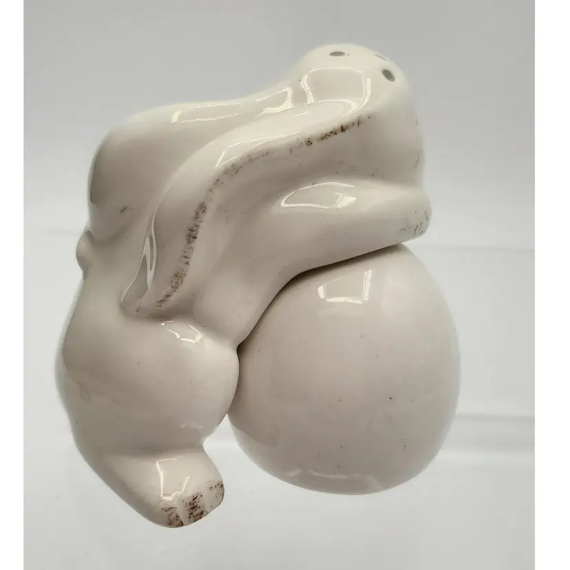 Vintage Ceramic Bunny Hugging Easter Egg Salt & Pepper Shakers