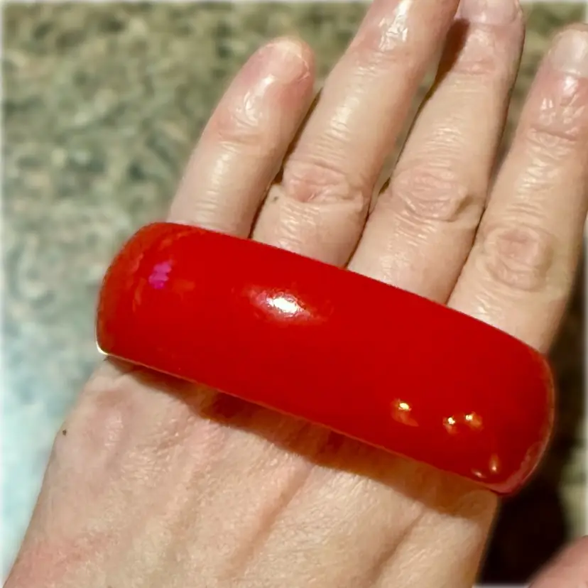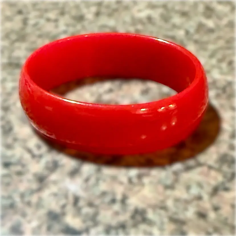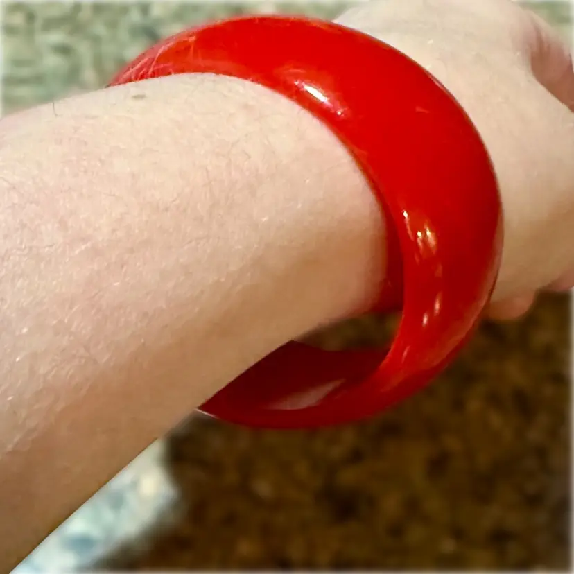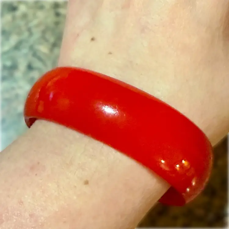 Vintage Cherry Red Bakelite Chunky Oval Bangle Bracelet