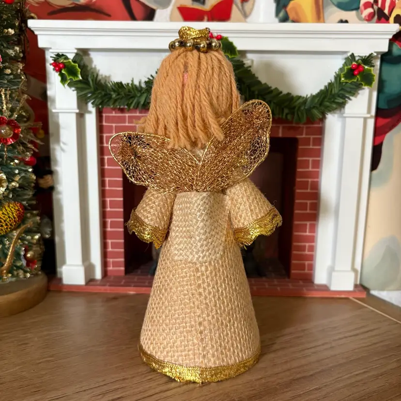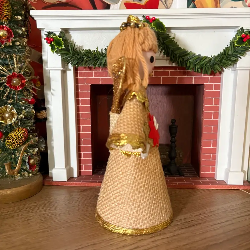 Vintage Christmas Burlap Cone Angel Japan (A) Tan