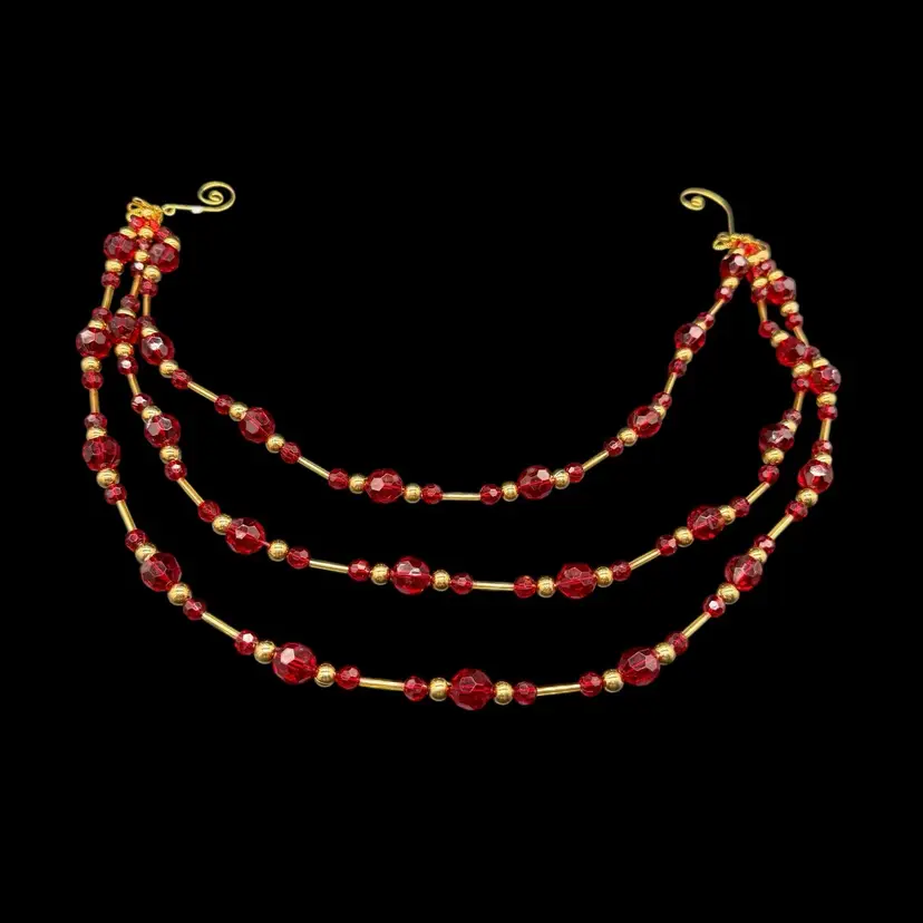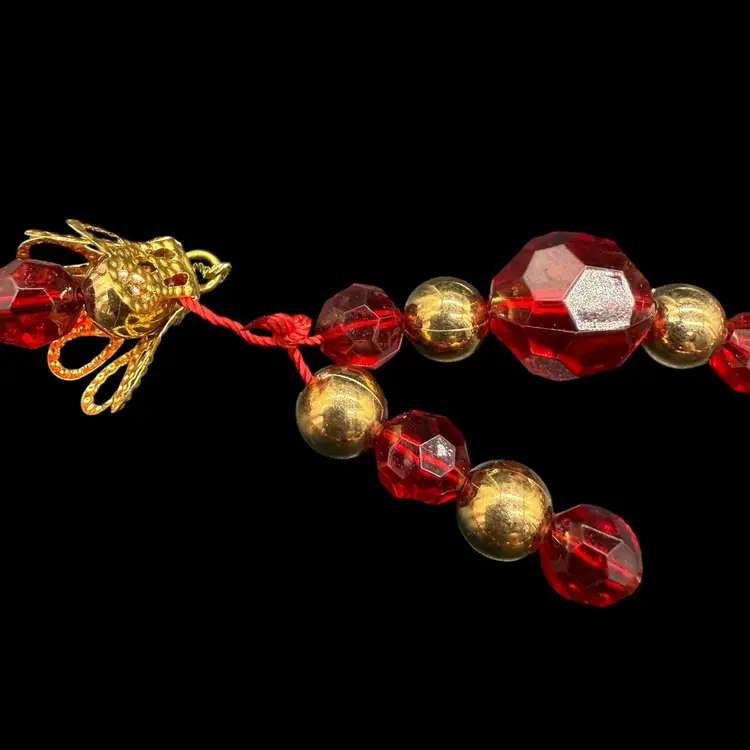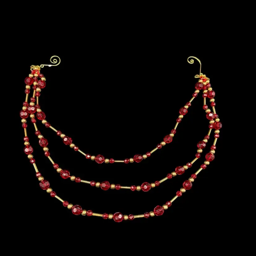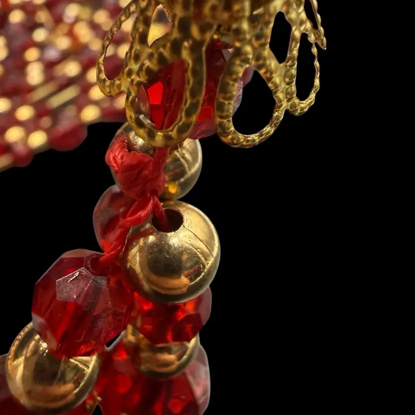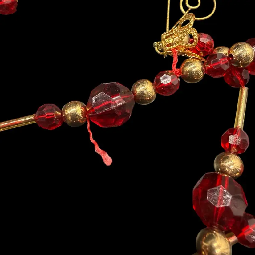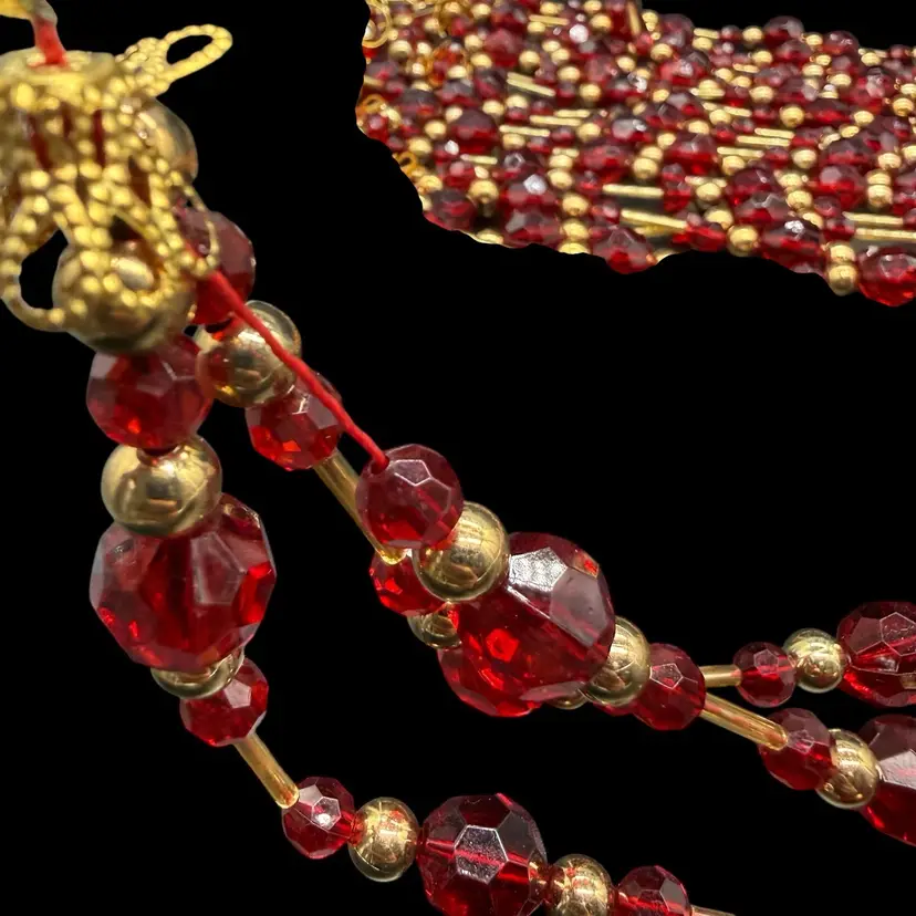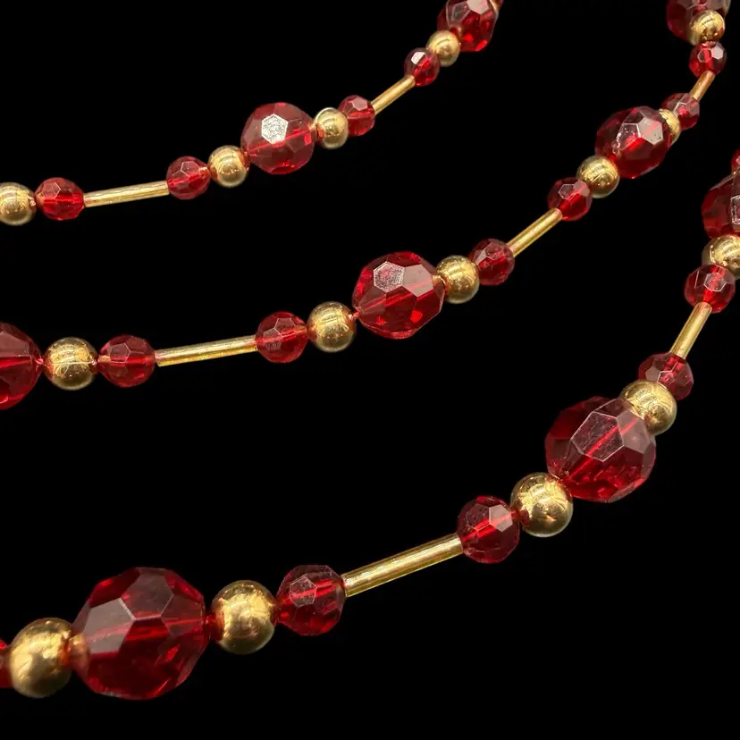 Vintage Christmas Red & Gold Beaded Faceted Garland Swags 8 Triple Strands As Is