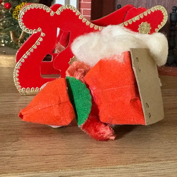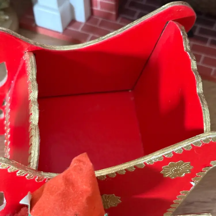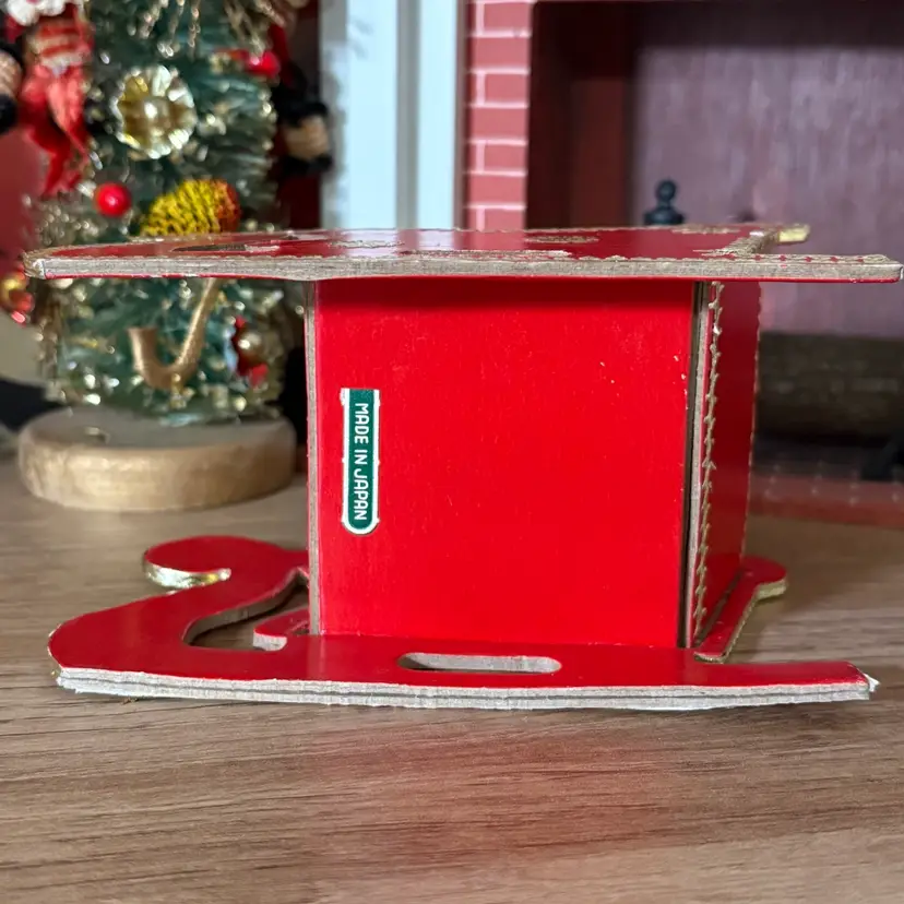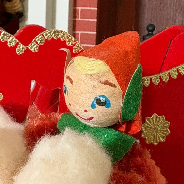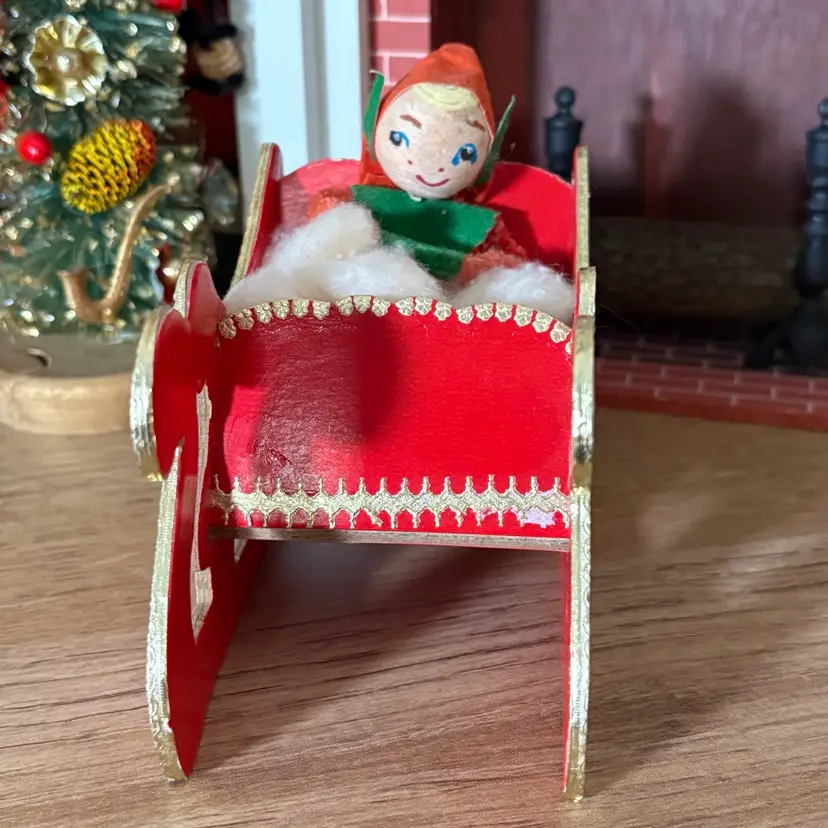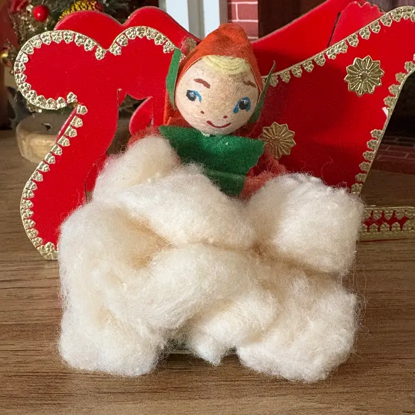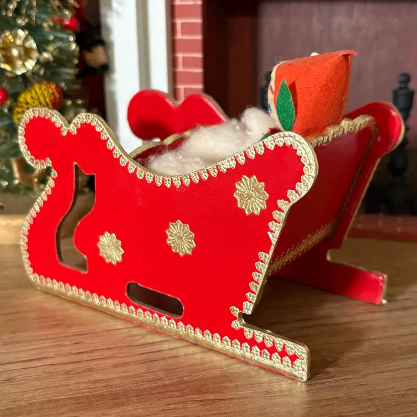 Vintage Christmas Sleigh Red Cardboard with Pixie Elf Spun Cotton Japan