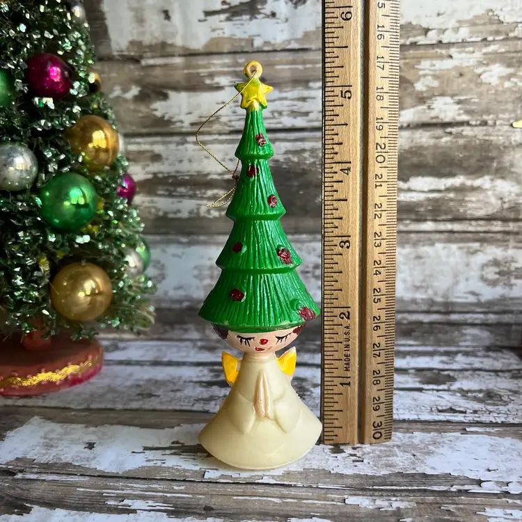 Vintage Christmas Tree Blow Mold Angel Ornament Made in Hong Kong