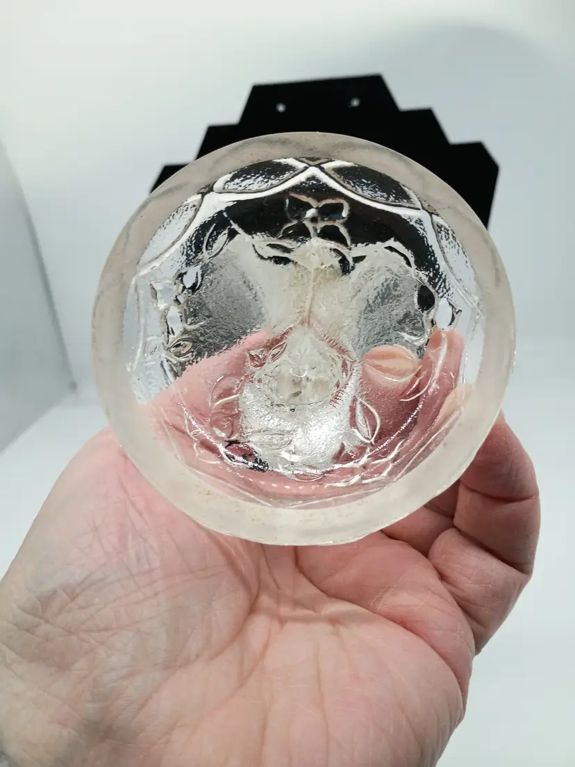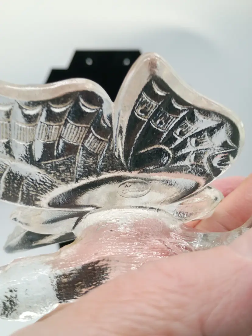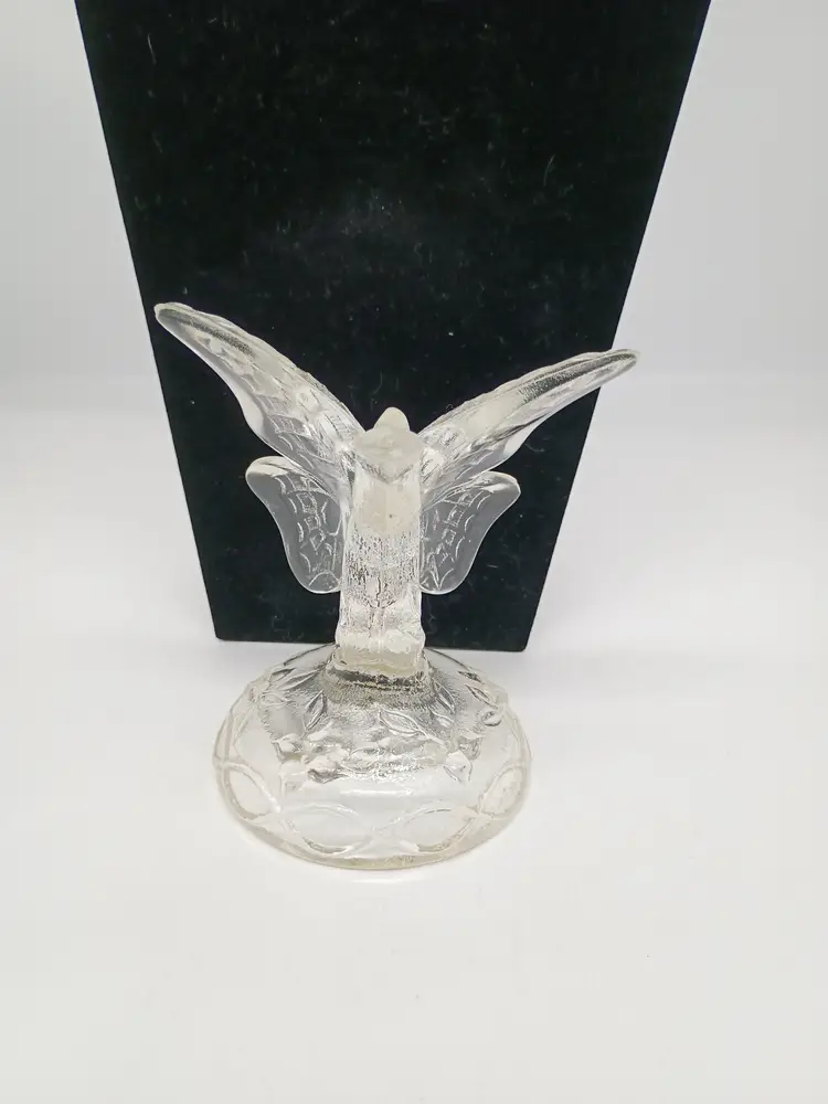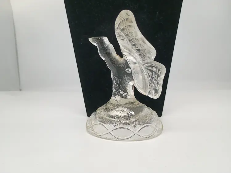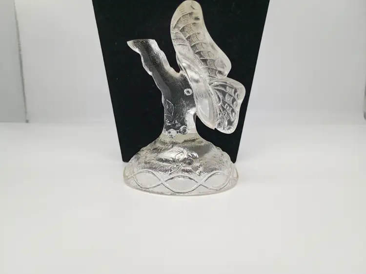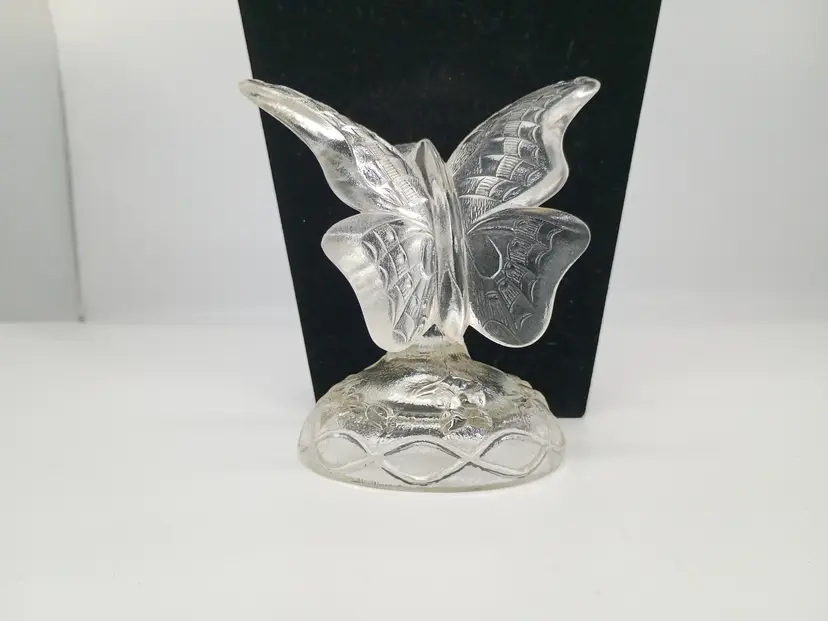 Vintage Fenton Art Glass Figurine Butterfly Ring Holder Satin Frosted Crystal. This is 4.75 inches tall 4.25 inches long and 3.5 inches wide. This is preowned, No chips cracks or flea bites, This is undecorated and has the 8 in the mark for part of the original production in the 1980's. Excellent condition. Ships USPS domestically and UPS/ USPS International Shipping globally