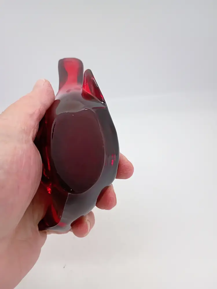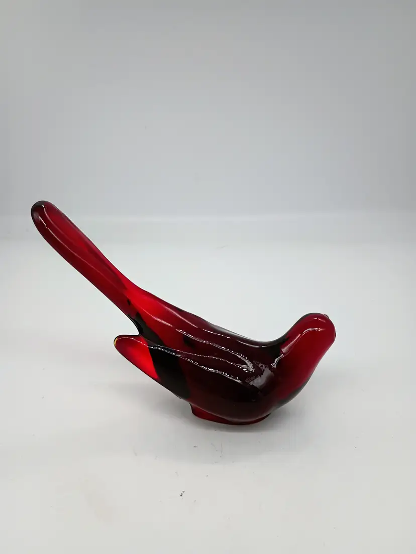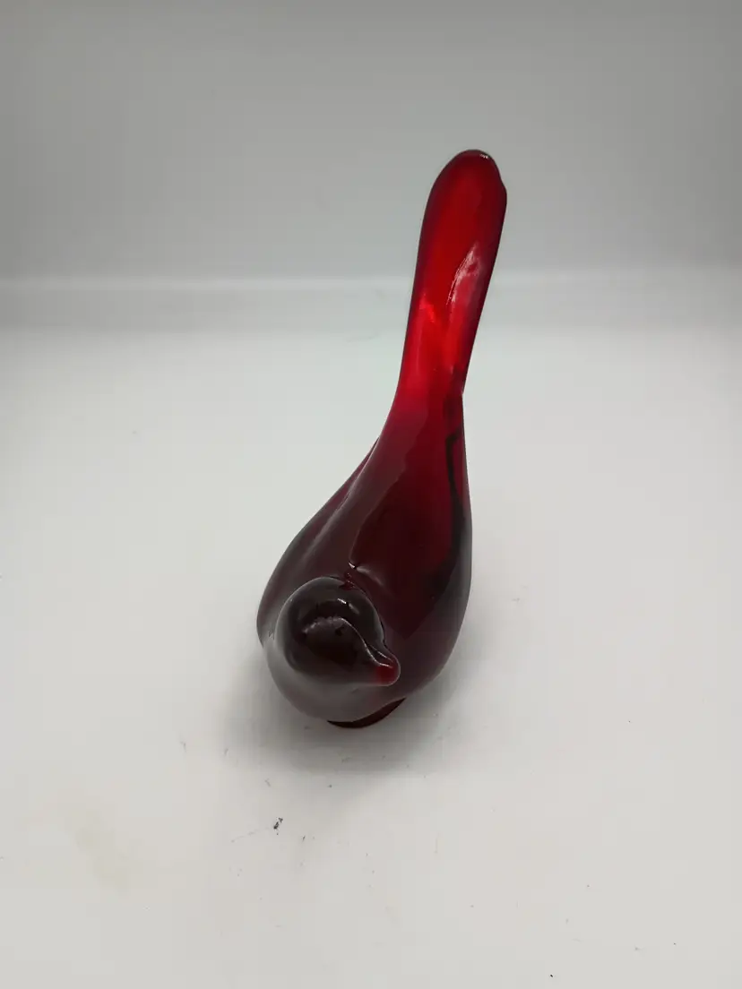 Vintage Fenton Ruby Red Glass Figurine Bird of Happiness Paperweight Long Tail. This is 5.75 inches long beak to tail 4.75 inches tall and 2.25 inches wide. This is preowned, No chips cracks or flea bites, This is a harder to find undecorated one. This does have impressed mark. Near Mint condition. Ships USPS domestically and UPS International Shipping globally