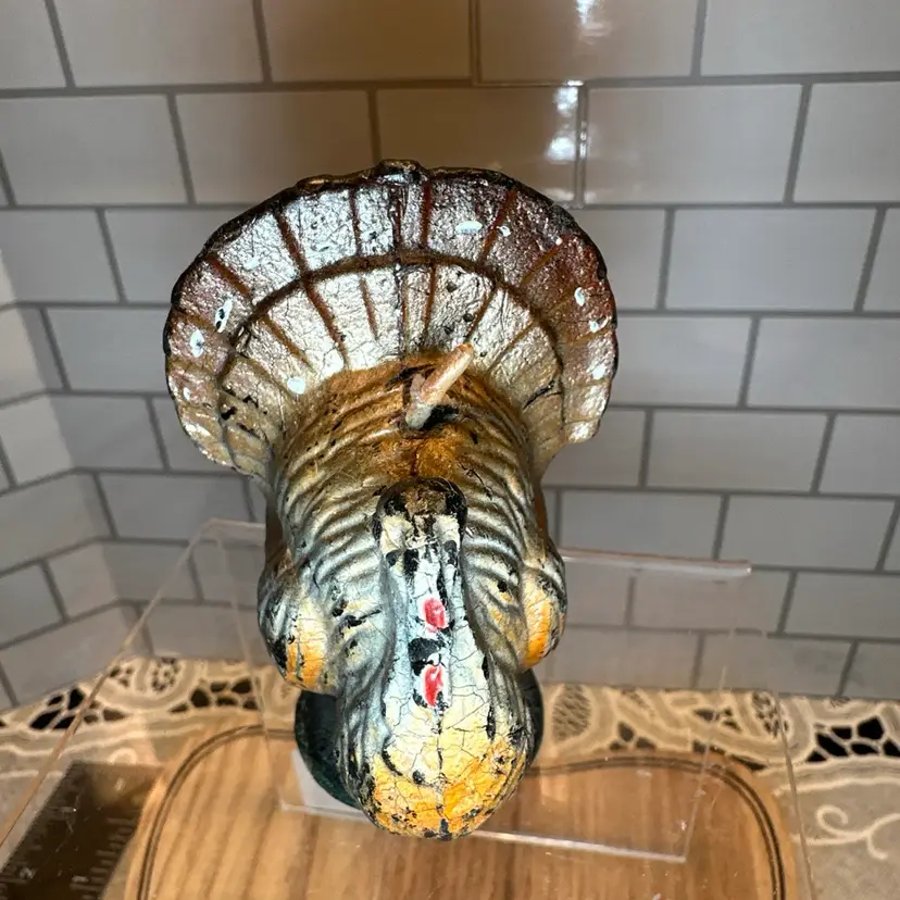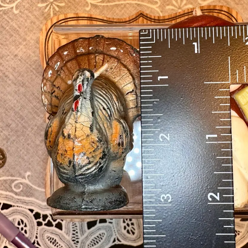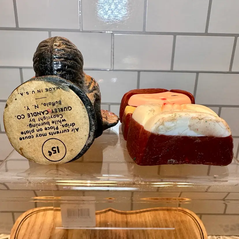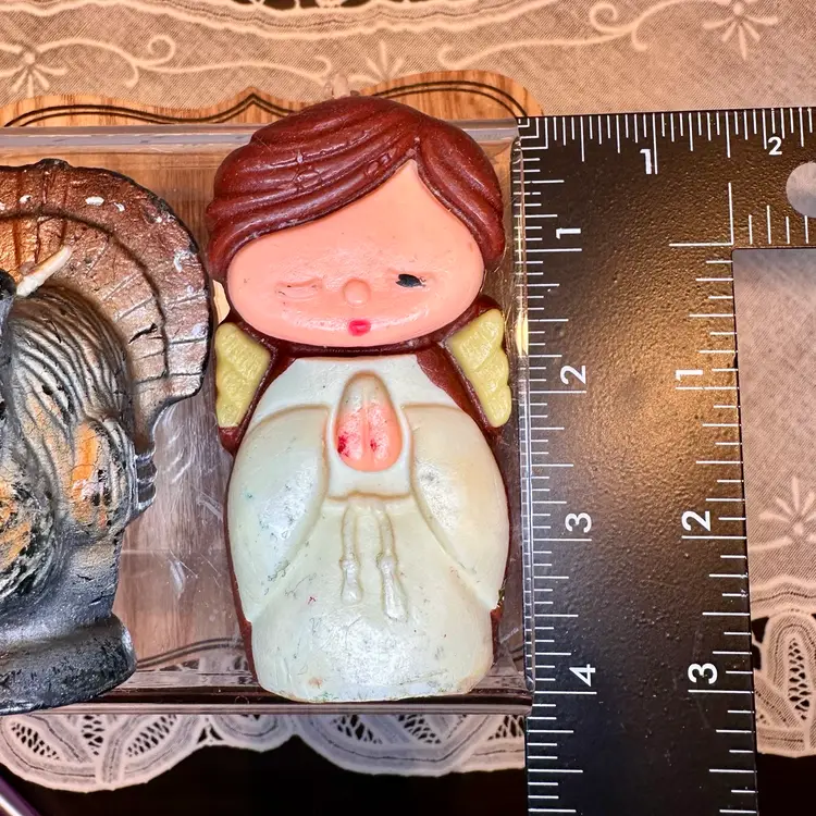 This pair of vintage candles includes a Gurley turkey (3-1/2") and W&F Manufacturing angel (4"), perfect for Thanksgiving and Christmas decorating.