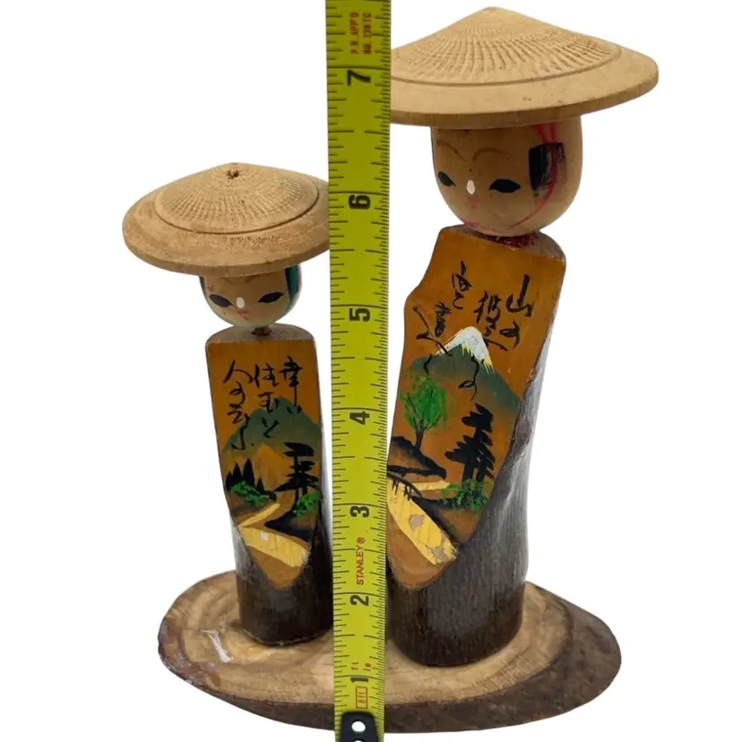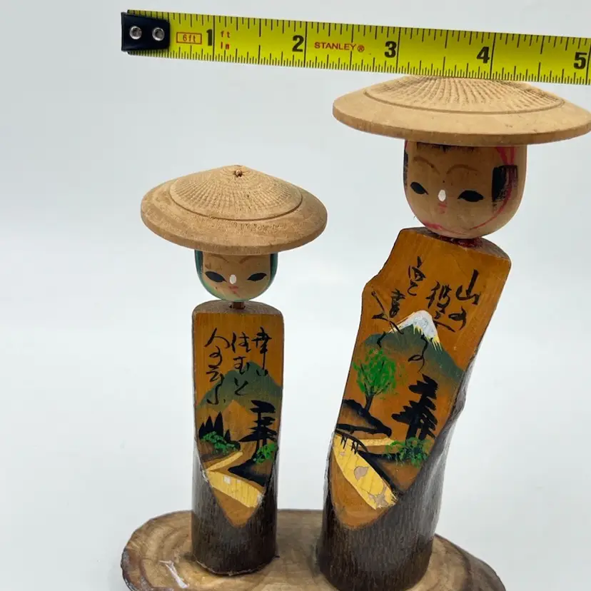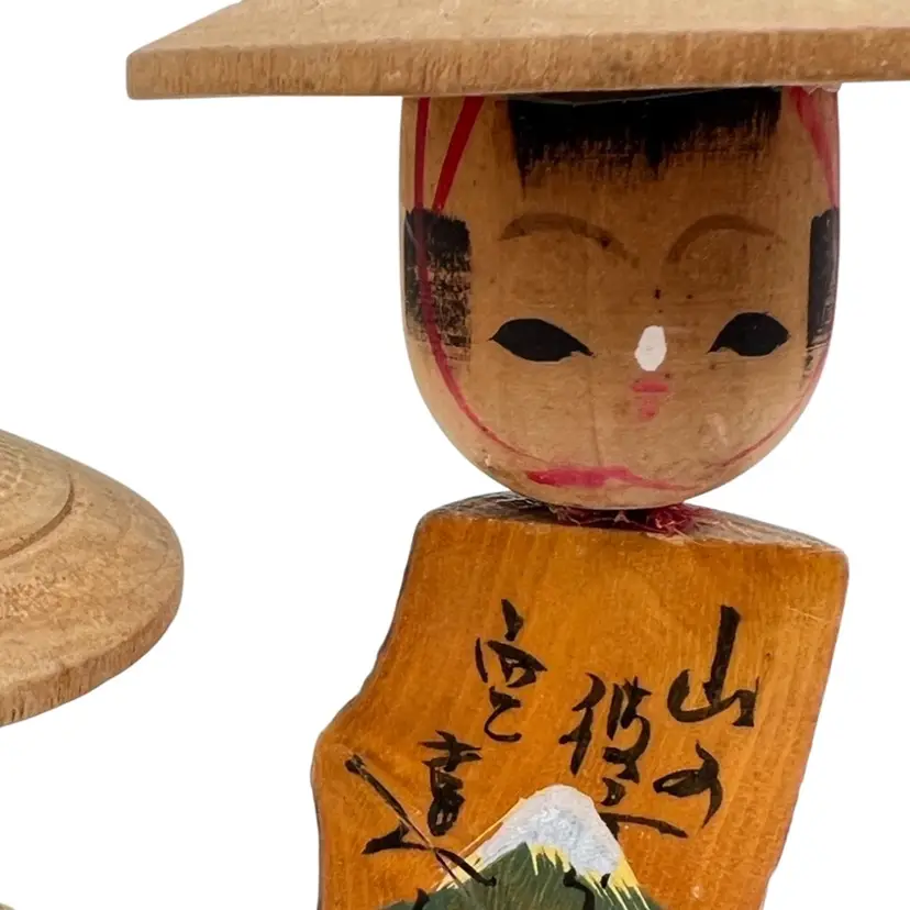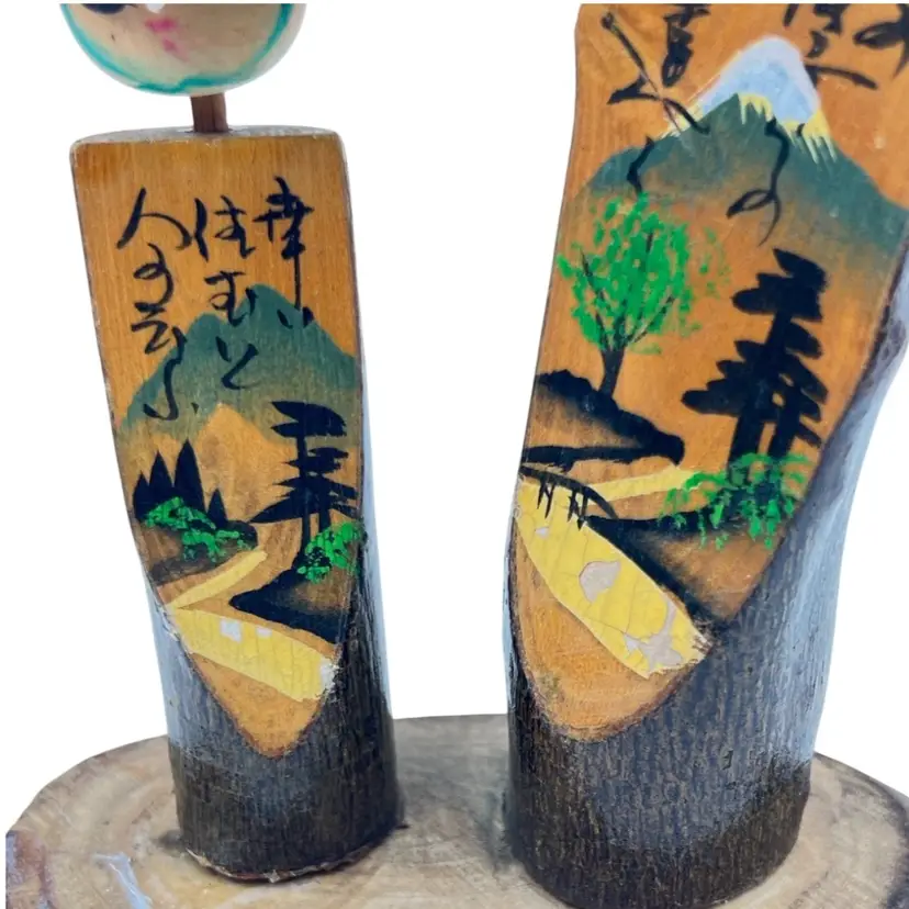 👉 7.5x5” Hand Painted Wood 👉 山岳寺 (Sangakuji) - Mountain Temple 空役 (Kūyaku) - Empty role/duty 幸せ 住む 人 Translation: Happiness To live Person 👉Shipping Overages <$1 Refunded 👉No Chips or Cracks 👉 Review Photos for Best Condition Description 👉 Sold as Shown FUN FACT: Kokeshi dolls originated in the Tōhoku region of northeastern Japan, where craftsmen in hot spring villages began making them as toys for children during the Edo period (1603-1868 CE).