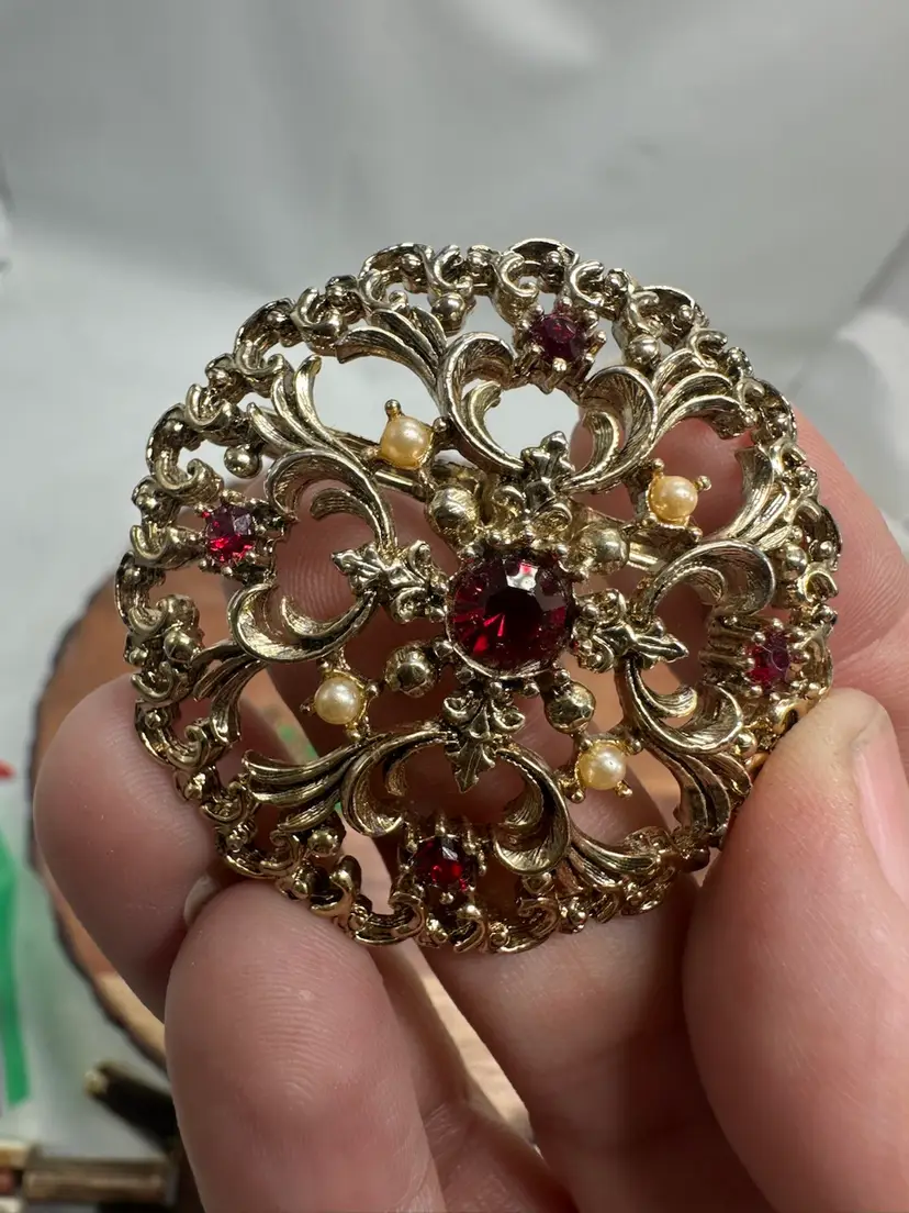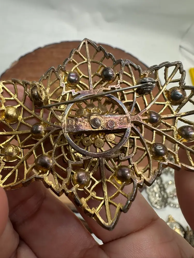 Beautiful vintage brooches Lot of 6 Good condition for age Stones are vibrant.