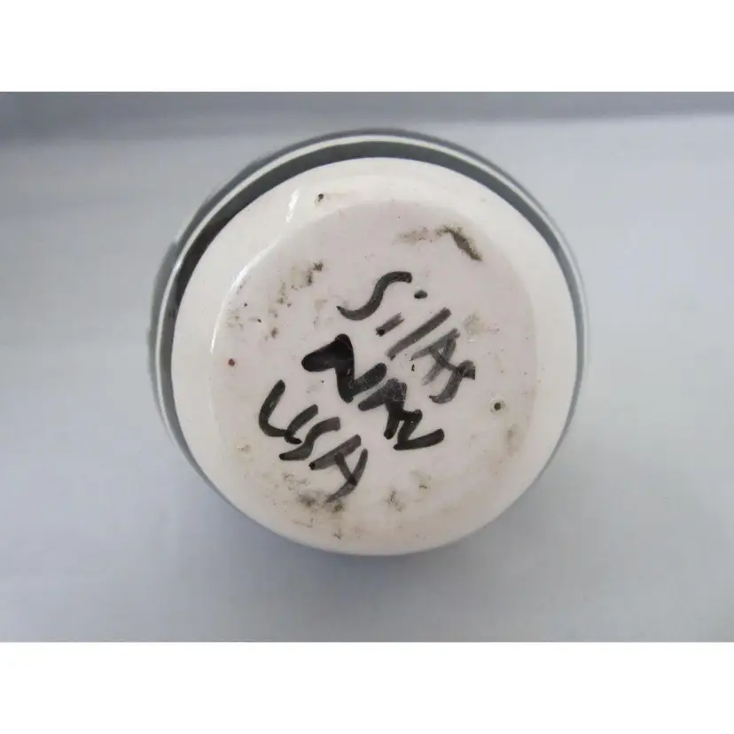 Vintage Mesa Verde Navajo white and black wedding vase signed Silas. It comes with the original paper from Mesa Verde Pottery. The vase measures 2 3/4" x 2 1/2" x 4" tall. In great condition.