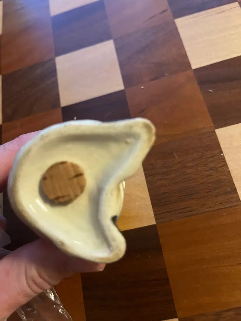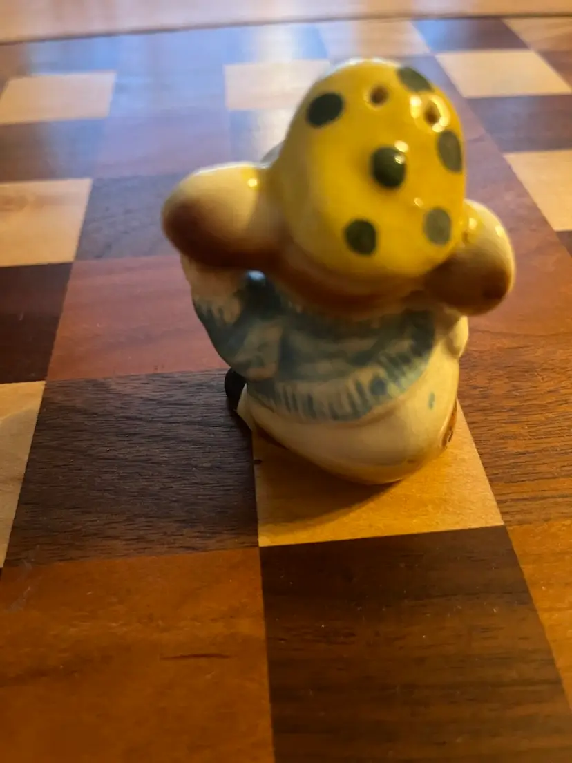 Some where is visible on the pieces. These originally would not have been in the set together as the mouse would have come with another mouse and the cheese would’ve come with a mouse dressed as a thief. There are some chips in the set.