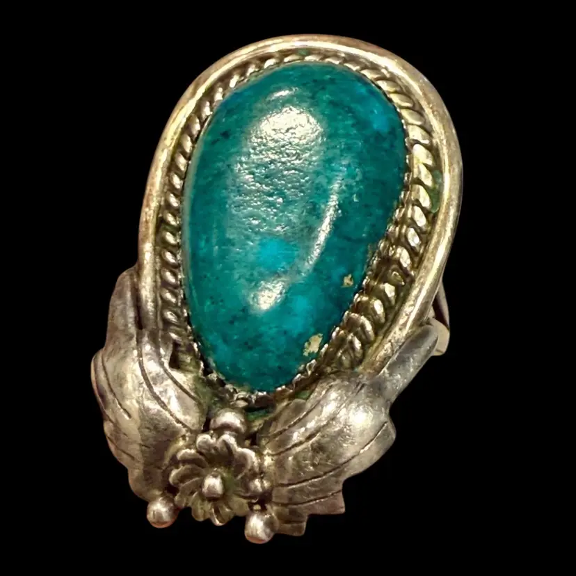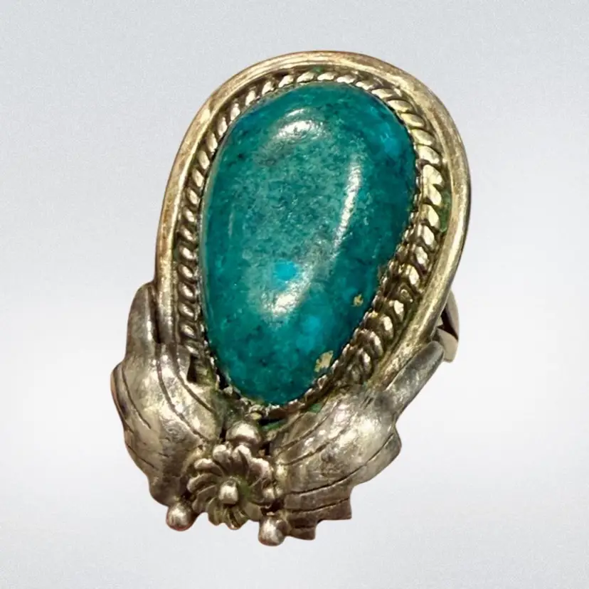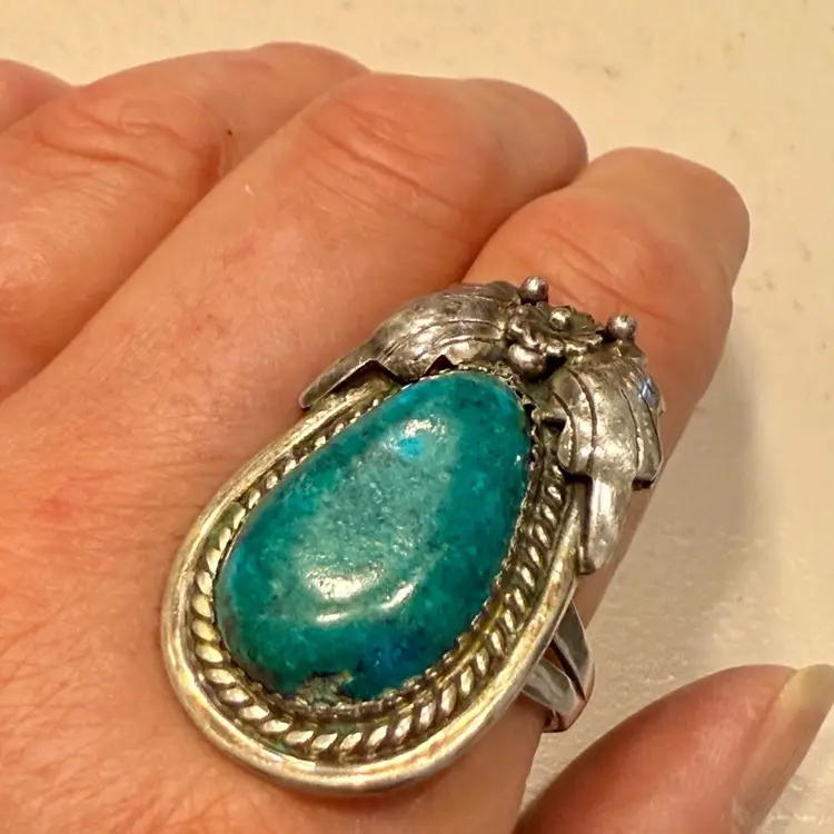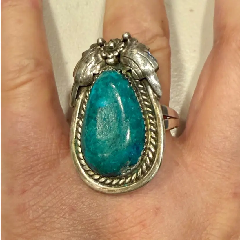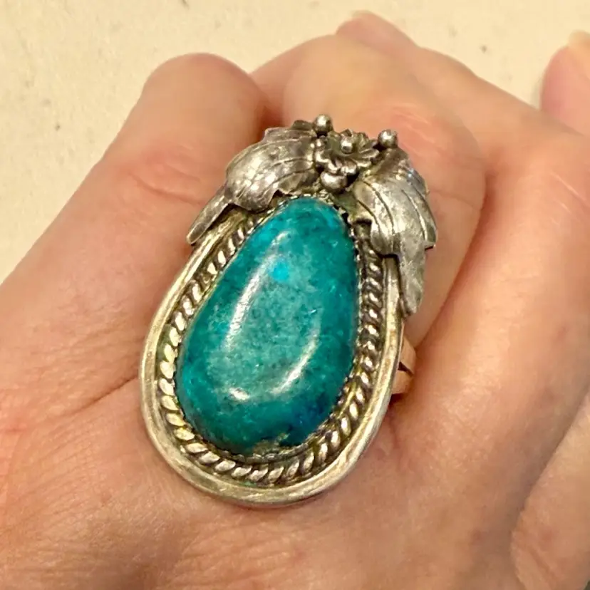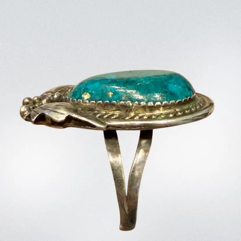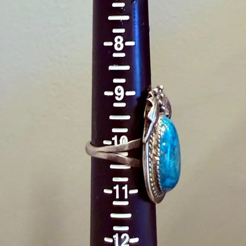 Vintage Navajo Sterling Silver & Turquiose Ring Size 10, 14.2g