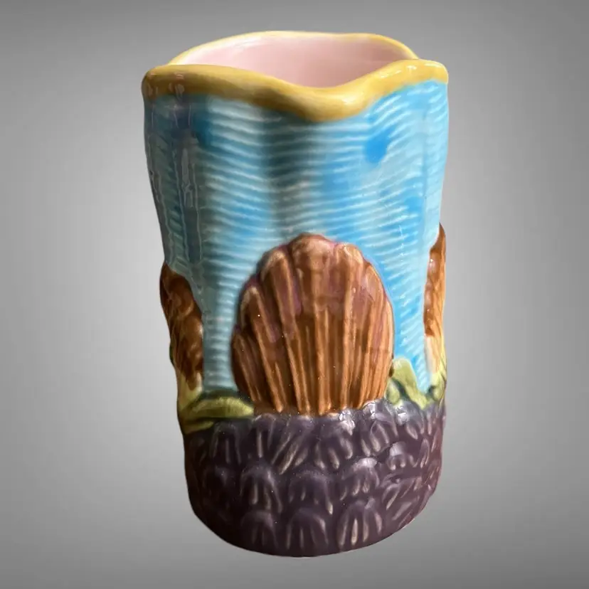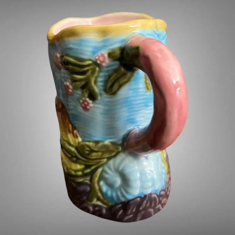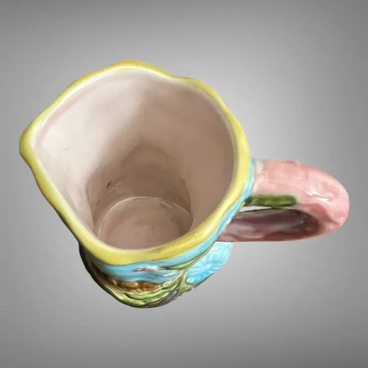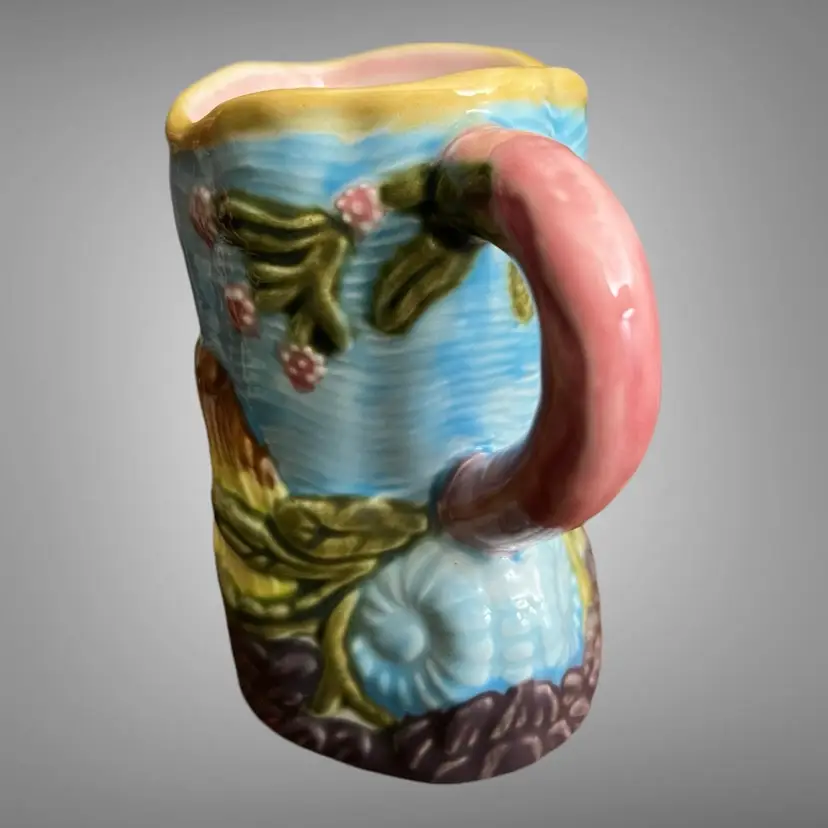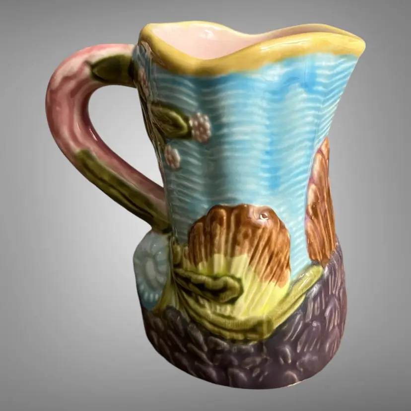 Vintage Jay Willfred Andrea Sadek Ceramic Pitcher / Creamer Beautiful Ocean Themed with creamy pink and blue glaze 4.5”H x 5”W No chips or cracks Slight crazing on bottom of creamer