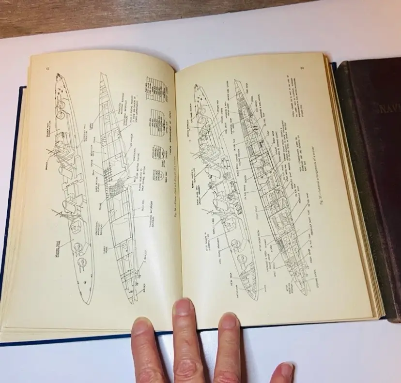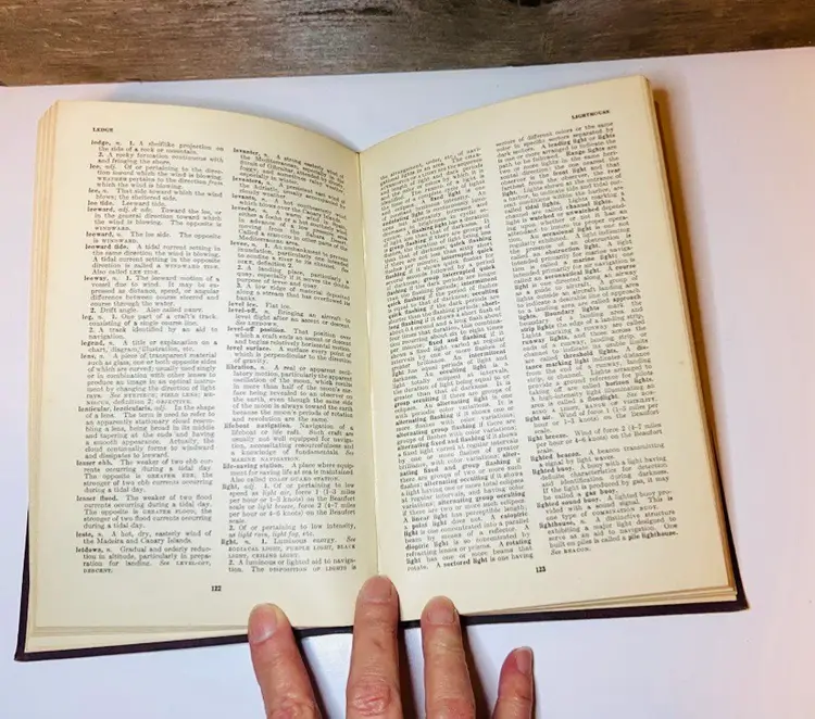 This set of 2 books includes the Navigation Dictionary circa 1956 and the Manual of Seamanship Volume 1 circa 1951. They are both in good used condition. Some edges have a little wear but not too bad. Great addition to your library.