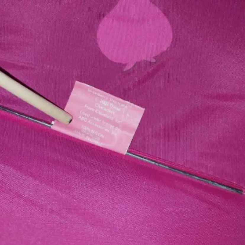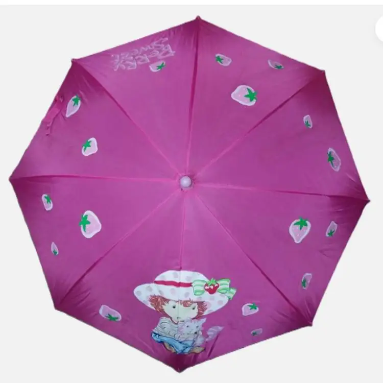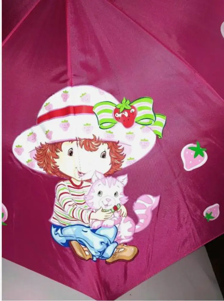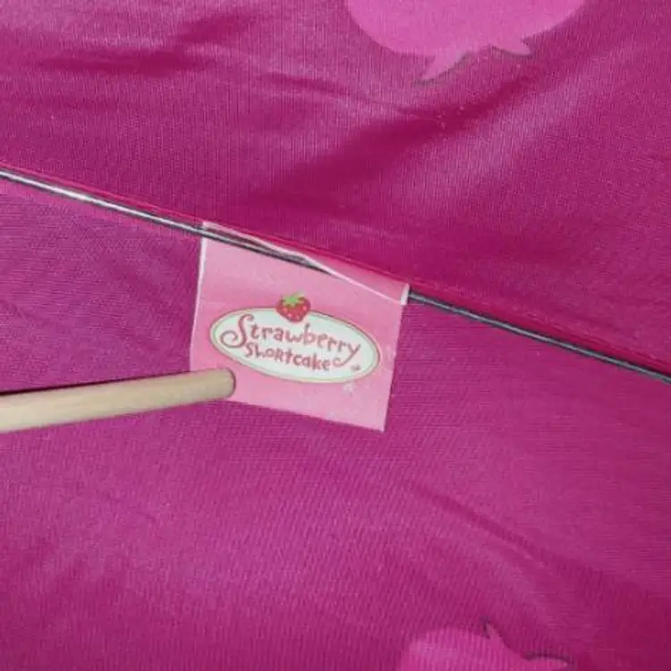 This almost-vintage, Y2K 2005 child sized umbrella is a rare find for any fan of the beloved cartoon character, Strawberry Shortcake, which is a very collectible, popular and desired item right now!! It measures 19" long when closed. Made from durable nylon material, and plastic and metal, this child-sized umbrella is perfect for those rainy days. The vibrant pink color and Y2K design make it a unique addition to any vintage accessories collection. The umbrella is an original piece from the early 2000s made by, Those Characters From Cleveland brand. Add this specialty item to your collection today! It is in great condition and all in working order. All the thin metal rods are present, UNBENT and working fine! It opens and closes perfectly! The graphics are colorful and crisp with no signs of wear! I can't find another out there like it that's available for sale! Not sure if there was an end cap on the end f the handle or not-but this is how I found it. Please see all pics, as they are part of the description.
