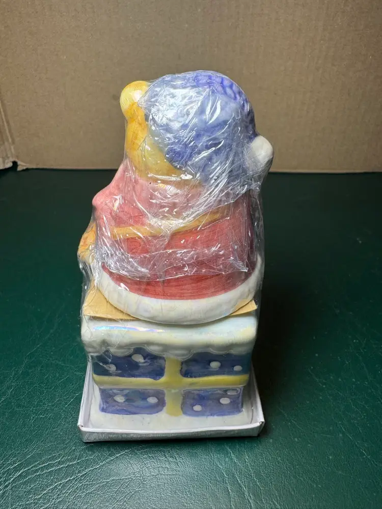 Add some vintage charm to your kitchen with this adorable teddy bear and gift nesting salt and pepper shaker set. The set includes two ceramic shakers, both measuring 2.5 inches in height and width. The shakers feature a cute snowman design and are perfect for the Christmas season.