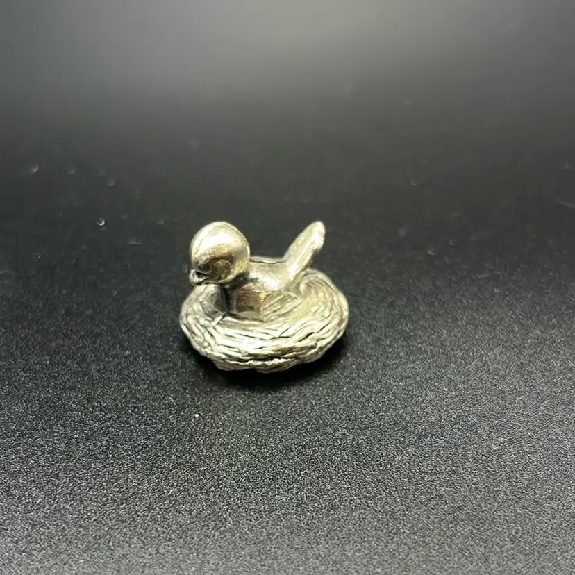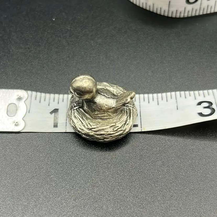 Vtg Miniature Pewter Bird On Nest Figurine 1 Inch