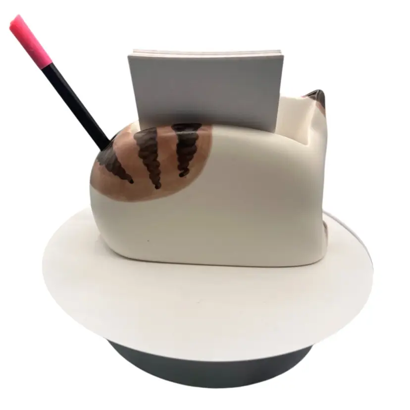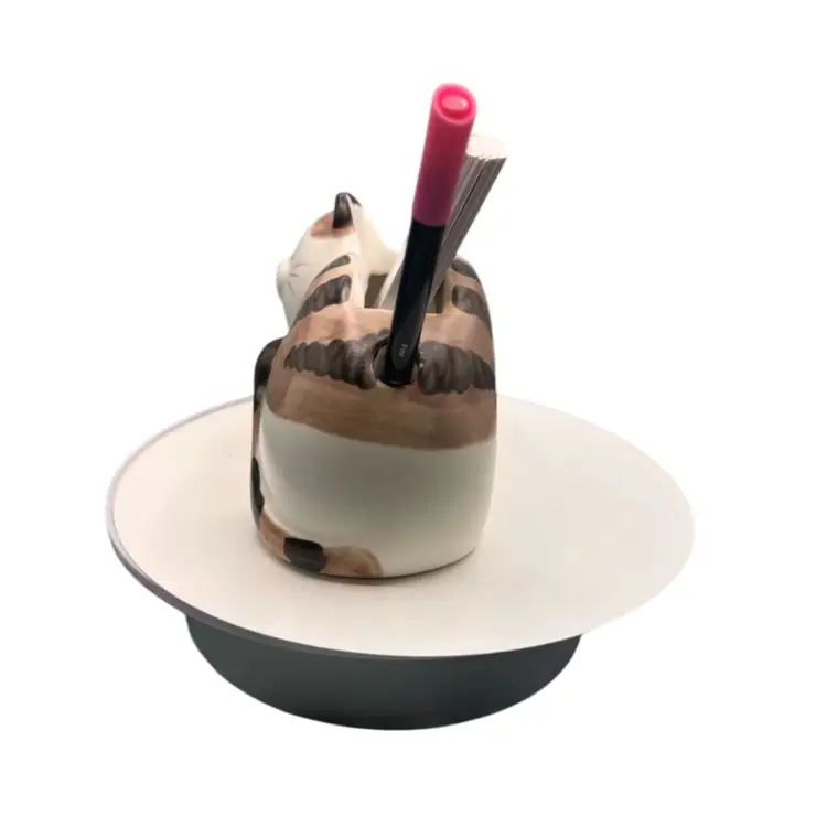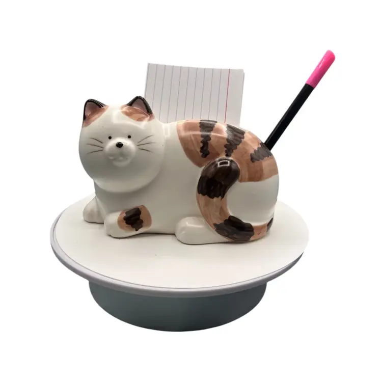 VTG TAKAHASKI CAT CERAMIC NOTEPAD/PEN HOLDER…SAN FRANCISCO 94103…MADE IN JAPAN. HE CAN BE USED FOR ALL SORTS OF THINGS HE WAS A PLANTER WHEN I PICKED HIM UP HAD TO CLEAN THE INSIDE AND TAKE SOME FELT OFF THE BOTTOM.