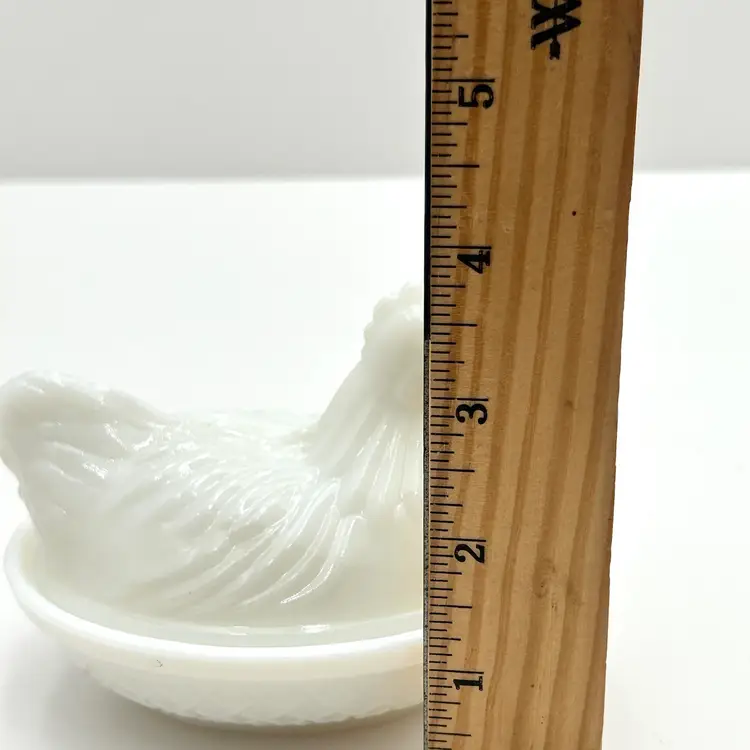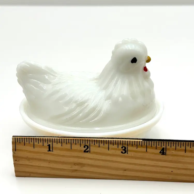 As shown 3.5 inches tall by 4 inches long No chips or cracks but some paint loss