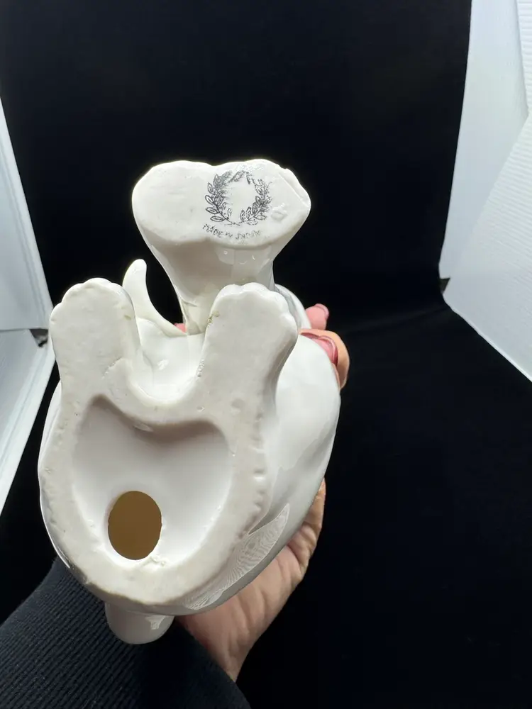 Unknown origin; mark on base “Made in…” possibly Japan; 8.5x5.5; rough spot on tip of one ear- see photos