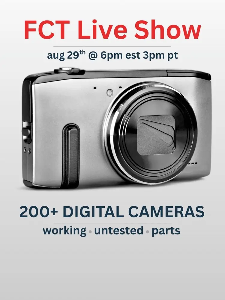 We sell tons of Digital Cameras of all brands and condition in bulk and individual. Come check us out!